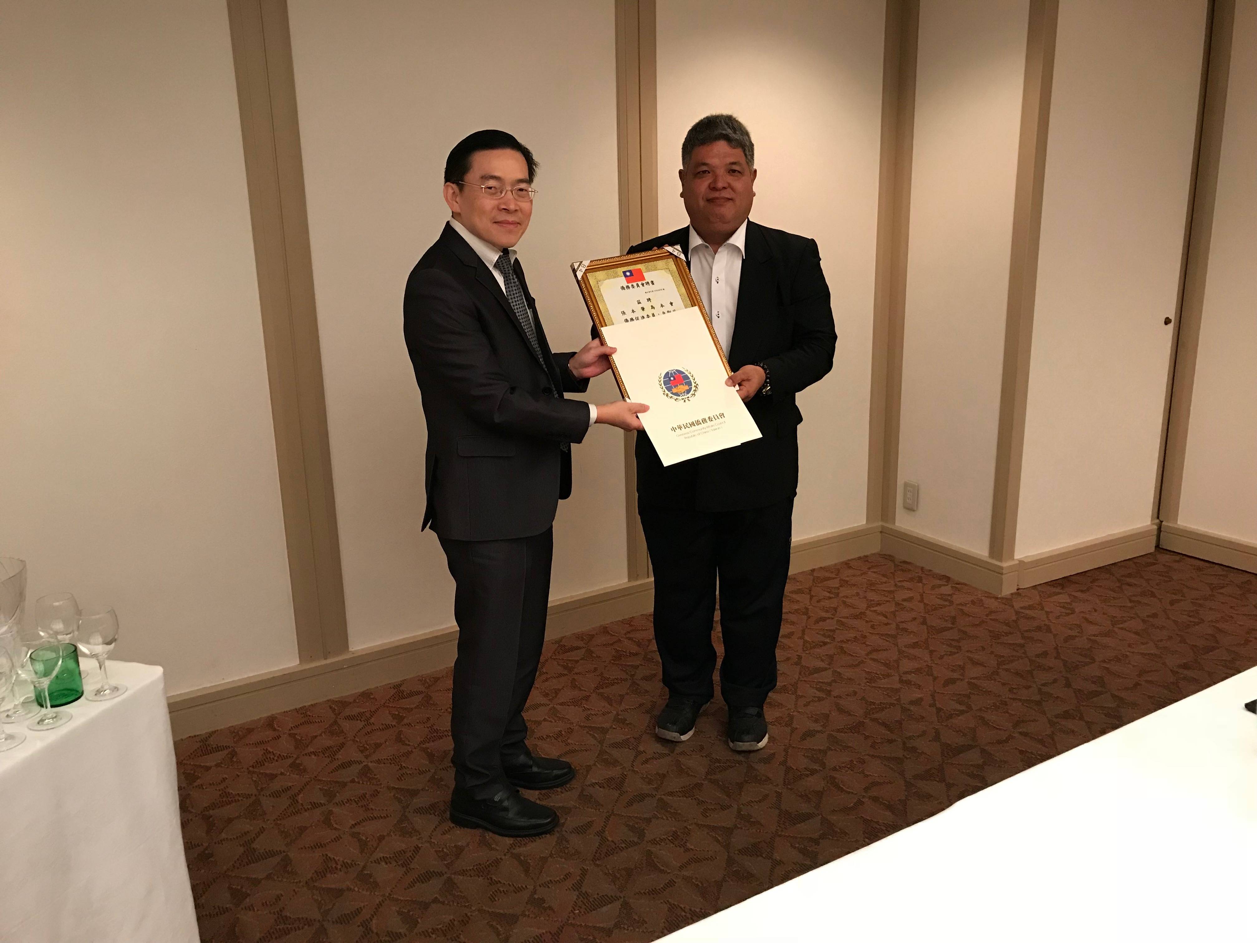范處長在典禮中致詞表示,雖然外交處境艱難,但有委員支持政府,在駐地發揮影響力,使台灣與沖繩在經濟、觀光、文化及青少年交流等各方面關係日益密切。這次黃僑務委員獲總統再度任命、其他位僑務促進委員則獲僑委會續聘,可以說是實至名歸,希望能持續協助政府致力推動僑務工作,以及促進台日關係發展。