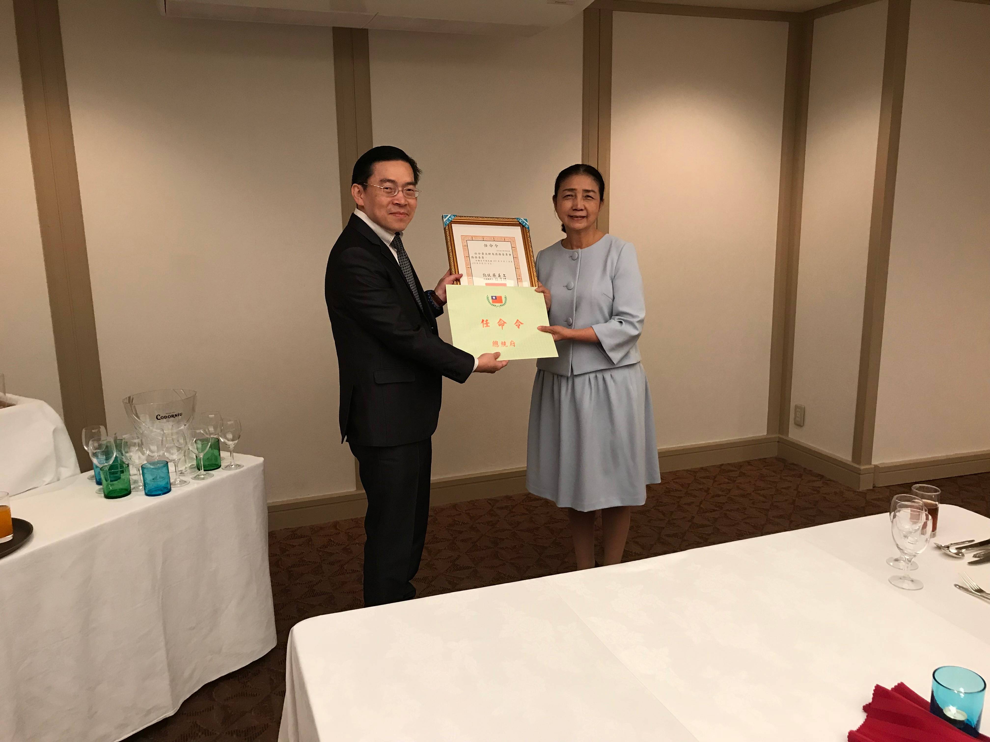 范處長在典禮中致詞表示,雖然外交處境艱難,但有委員支持政府,在駐地發揮影響力,使台灣與沖繩在經濟、觀光、文化及青少年交流等各方面關係日益密切。這次黃僑務委員獲總統再度任命、其他位僑務促進委員則獲僑委會續聘,可以說是實至名歸,希望能持續協助政府致力推動僑務工作,以及促進台日關係發展。