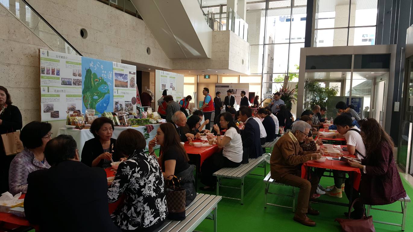 出席來賓包括駐日本代表處郭仲熙副代表、駐那霸辦事處范振國處長、台灣貿易中心福岡事務所駱慧娟所長、琉球華僑總會張本光輝會長進行剪綵,為台灣花蓮縣特展揭開序幕。