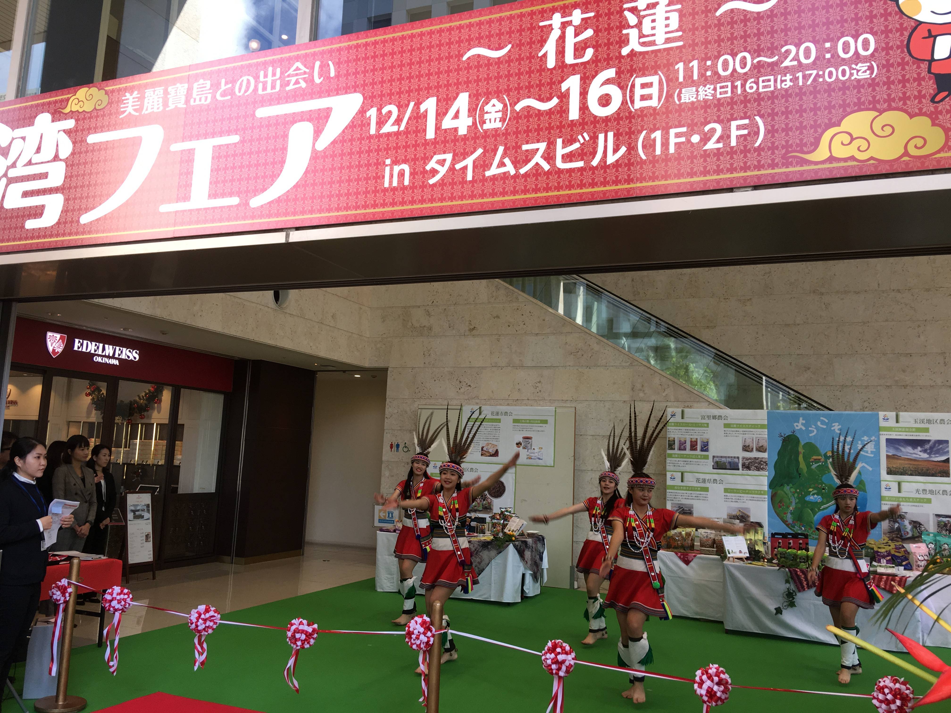 【沖繩/綜合報導】由琉球台灣商工協會與沖繩時報聯合主辦、駐那霸辦事處後援的「美麗寶島台灣-花蓮縣物產展」於十二月十四日至十六日在沖繩縣那霸市內盛大舉行。十四日上午舉辦的開幕典禮中,首先邀請花蓮縣原住民人士表演傳統原住民舞蹈進行開場,生動活潑且富有特色的服裝及舞蹈、音樂獲得出席來賓及在場觀看民眾滿堂喝采。