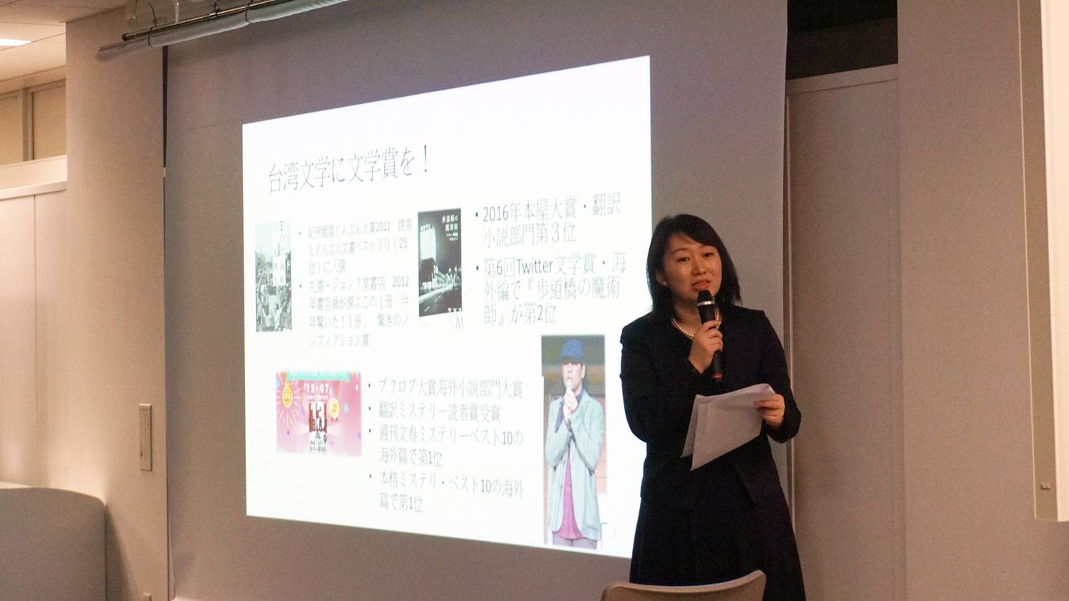 赤松提到,台灣文學作品在日本出版後,再版的作品只有五本,包括黃春明「莎喲娜啦.再見」、李昂「殺夫」、龍應台「大江大海」、吳明益「天橋上的魔術師」等,而五本中就有兩本是天野翻譯的。