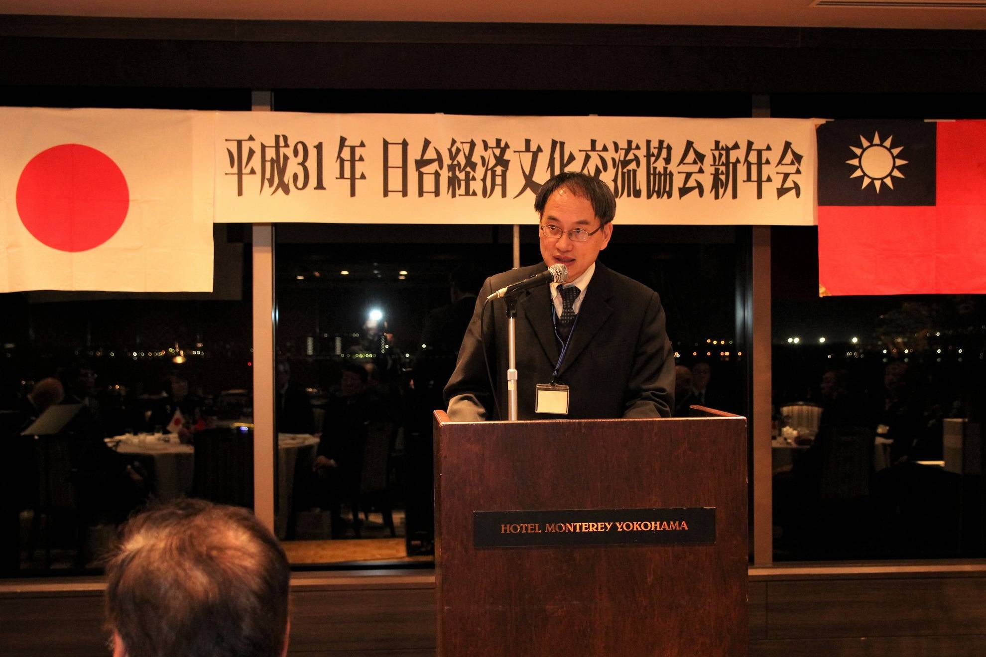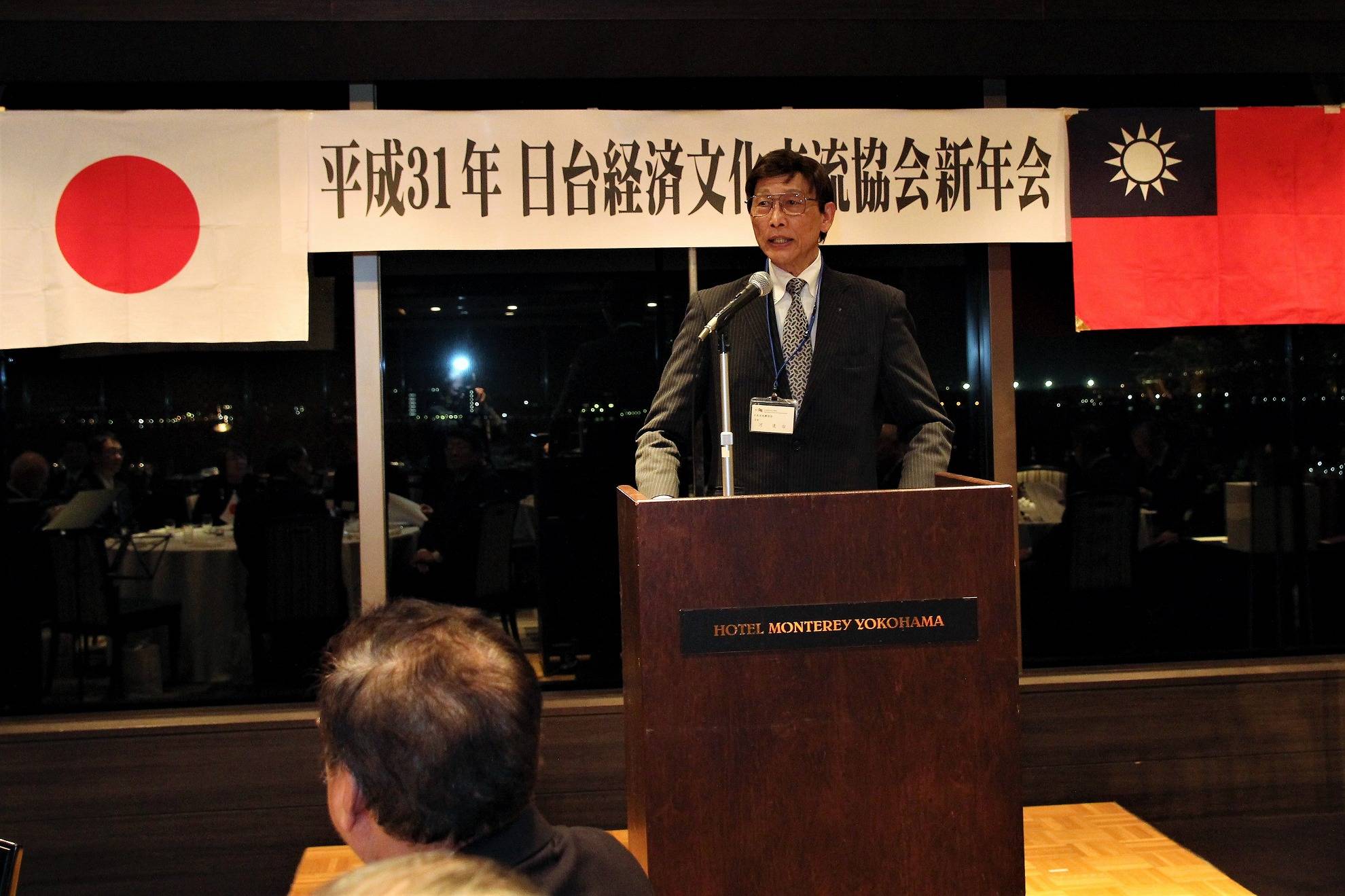 【橫濱/綜合報導】日台經濟文化交流協會於二月六日在橫濱蒙特利飯店十三樓舉辦新年會,駐橫濱辦事處秘書陳信宏、僑務委員河道台、橫濱華僑總會副會長許耀庚、橫濱台灣同鄉會吳正男顧問、橫濱靜岡僑界急難救助協會會長林隆裕等橫濱地區議員都出席共襄盛舉,慶祝新的一年到來。