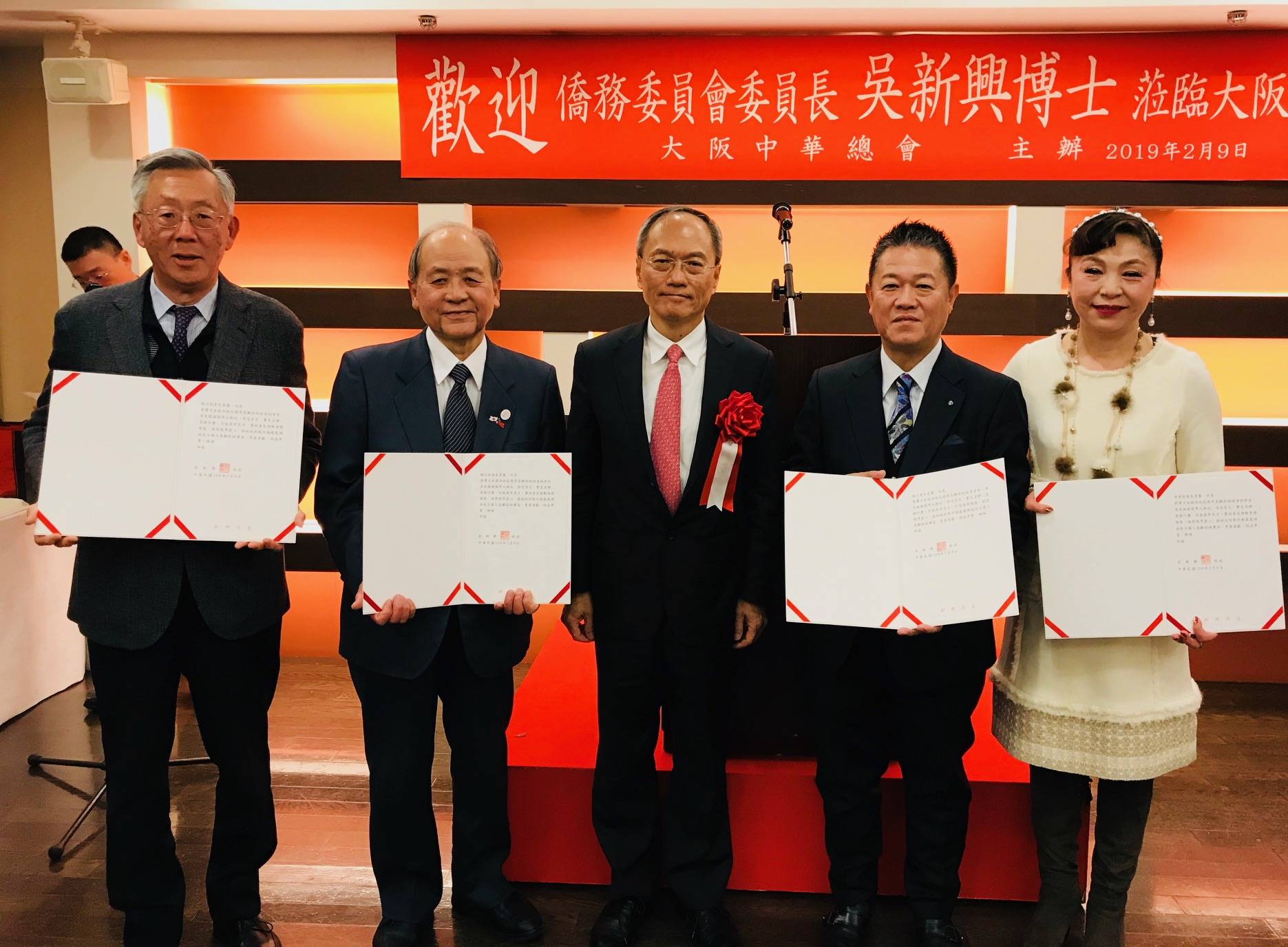 【大阪/採訪報導】關西地區僑界急難救助協會二月九日在大阪市大東洋餐廳舉行成立大會,僑務委員會委員長吳新興出席並頒發證書給第一任會長魏禧之及三位副會長洪勝信、陸超、謝美香等人。吳新興委員長表示,關西地區是全球第六十五個急難救助協會,該協會成立的目標是建構一個保護海外台灣同胞的安全網。