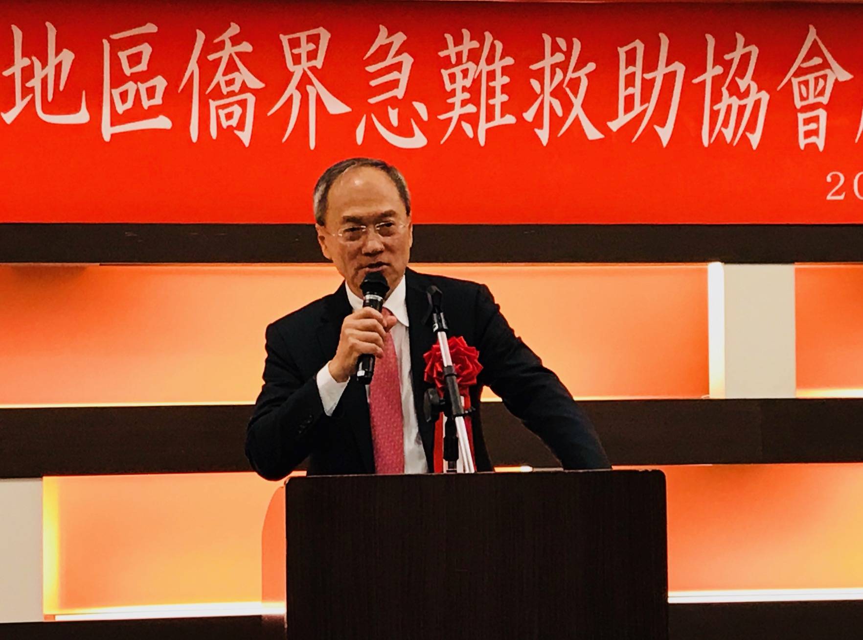 吳新興致詞時表示,自從他上任之後,就積極在全球各地籌組急難救助協會,因為政府的人力有限,但是海外僑胞的力量是無限的。目前已經在全球三十個國家成立六十四個急難救助協會,關西地區是第六十五個,目標是為海外的台灣同胞建構一個安全網,因應各種突發事故。關西急難救助協會將與大阪辦事處積極配合,幫助在海外遭遇緊急事故的台灣同胞,他特別感謝並恭喜每一位熱心參與的僑領,願意出錢、出力、出時間,幫助人,作功德,是有福氣之人。