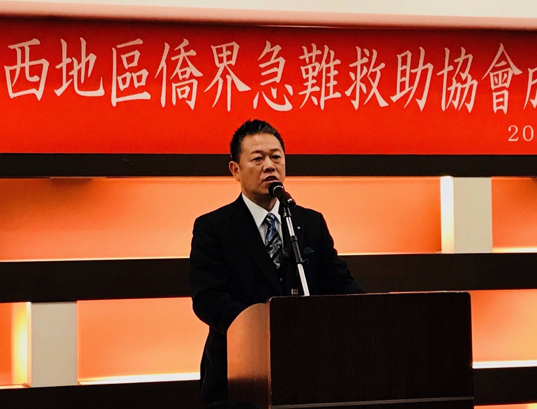 第一任會長魏禧之,同時也是京都華僑總會會長致詞時表示,早在協會正式成立以前,關西地區各個僑社就分別配合大阪辦事處,從事過各種緊急救助活動。例如京都地區,去年就發生不少緊急事故,例如急病、丟失錢包、護照等,京都華僑總會都提供了相應的協助。很高興關西地區僑社整合成立一個急難救助協會,未來我們會在駐大阪辦事處的指導下,提供海外台灣同胞各種急難救助服務。