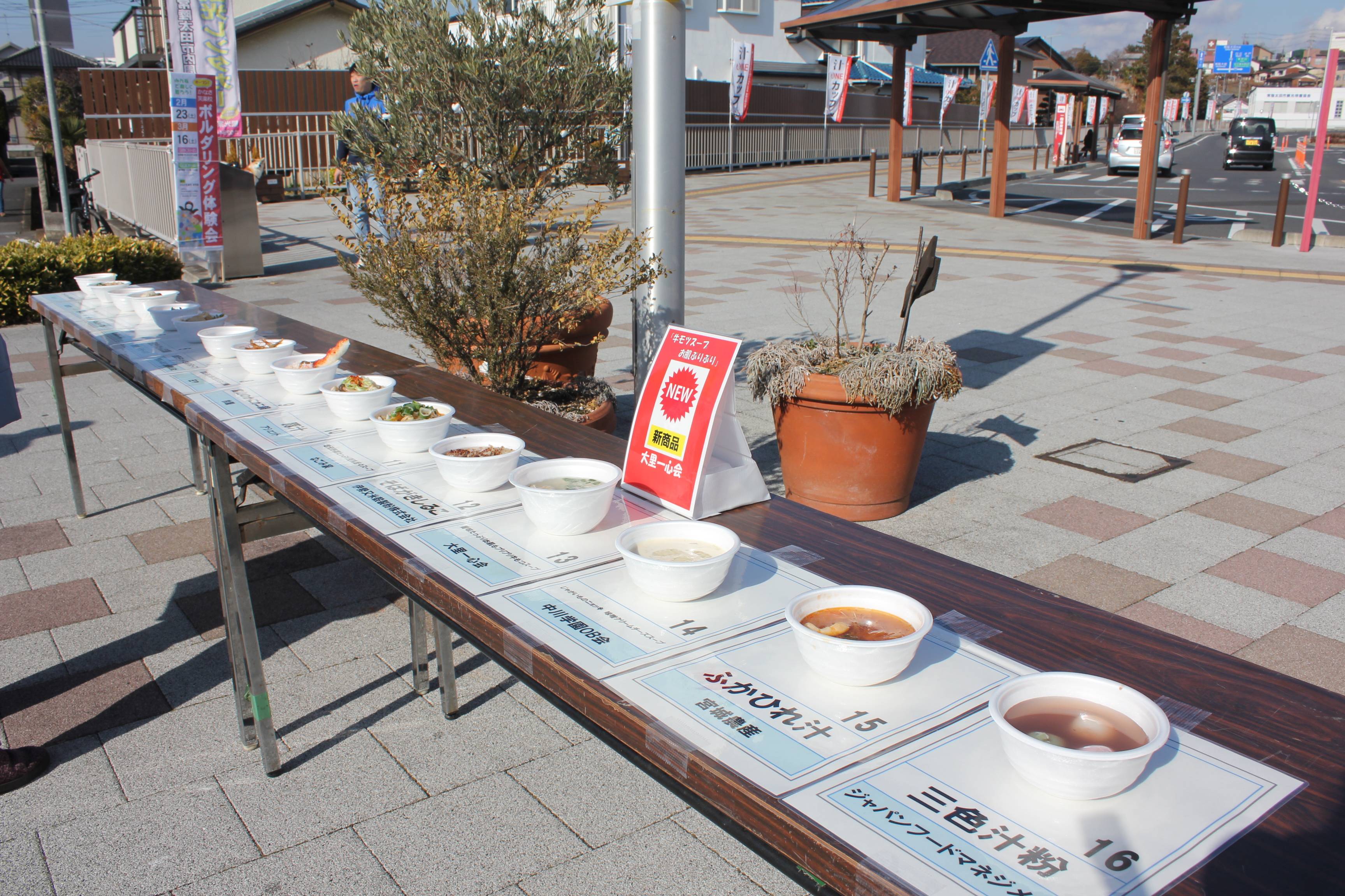 常陸太田市每年都會在JR常陸太田駅前廣場前舉辦「常陸太田 汁ONEカップ」活動,集結16家特色的汁物,且一定要用到當地的食材製作,讓路過的民眾投票選出最好喝的汁物,今年由「鈴屋」的「富山のかにカニ鍋」獲得民眾票選第一名,另外活動現場還販賣各式各樣的美食,彷彿熱鬧的祭典,常陸太田市大久保太一市長也特別對台灣遊客表示,有機會造訪常陸太田的話,務必參加票選活動,品嘗看看汁物。