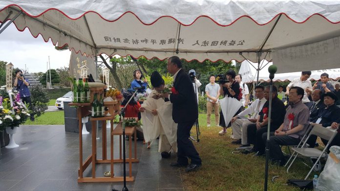 【沖繩/綜合報導】駐日副代表蔡明耀於六月二十二日應邀前往沖繩縣和平祈念公園出席二戰期間台灣陣亡士兵慰靈祭,沖繩僑界及友好團體並舉行盛大晚宴歡迎蔡副代表來訪。