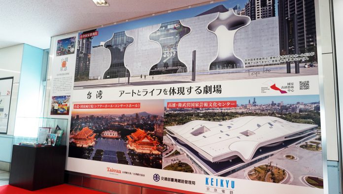 【東京/採訪報導】交通部觀光局與京急電鐵再度合作,於八月二十二日起在京急電鐵羽田國際機場站設置廣告牆面行銷,以台灣國際級的表演藝術中心和兩廳院為主題,展現出台灣的文化觀光,也與國家表演藝術中心簽署合作備忘錄,提供優惠措施,吸引更多外國客人來台體驗文化藝術。