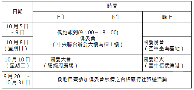 三、相關活動之確定詳細內容,將於僑委會網站「十月慶典活動專頁」置放相關活動訊息。
