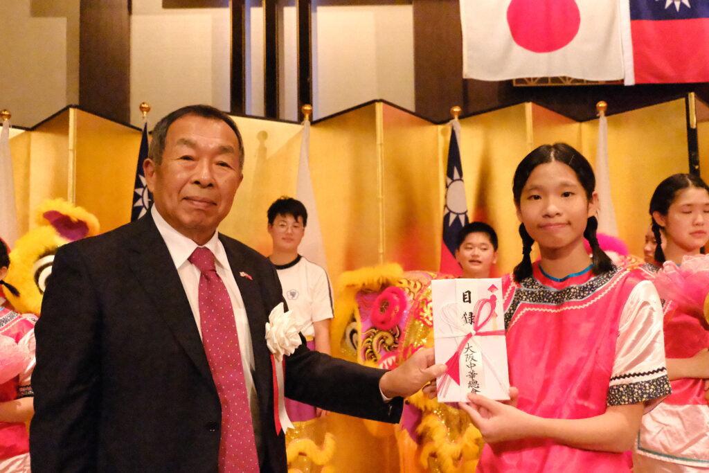 會前洪處長並頒贈感謝狀予大阪中華總會名譽會長洪里勝信,餐會開始後,眾人觥籌交錯,歡聲笑語此起彼落,都在共同慶祝著這個國人們共同的「生日」,席間除有刺激的抽獎活動,更有大阪中華總會與大阪中華學校師生們,共同串連起的一系列精彩民族表演活動,更令晚會增光添彩,讓大阪中華總會的一一二年國慶令人更是難忘。