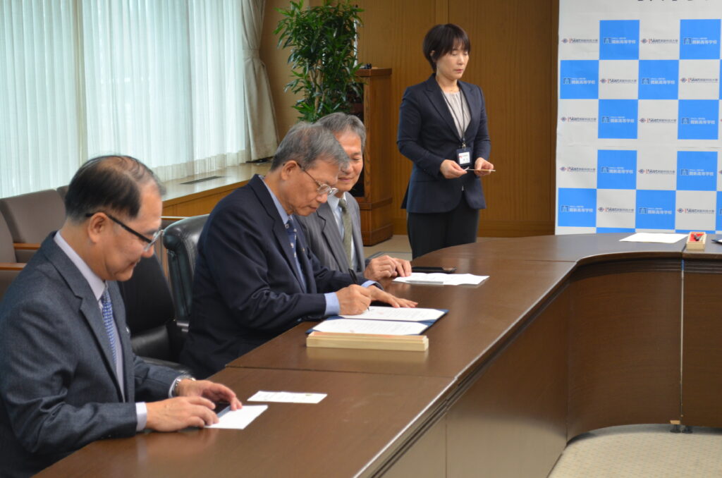 【熊本/綜合報導】台灣明新科技大學與日本熊本市的學校法人開新學園於11月20日在熊本縣廳舉行合作協定簽約儀式,雙方將在半導體人才培育領域展開合作,促進師生交流並強化產學合作。此協定希望旨在建立長期合作體制,提升兩地半導體教育及人才培養的國際化水平。熊本縣知事木村敬也到場見證雙方簽署協定。