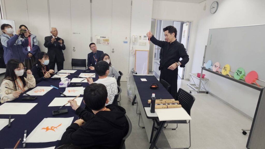訪問した一行は、校内見学の後「日本の昔遊び」や「地元の盆踊り」を通じて文化交流を楽しんだ。翌9日には日本台湾文化芸術交流会の企画による書道体験も行われ、書道家の永山玳潤先生と生徒の近藤麗さんが一人ひとりに指導。児童らは練習した自身の名を団扇に記すなど、日本文化への理解を深めた。