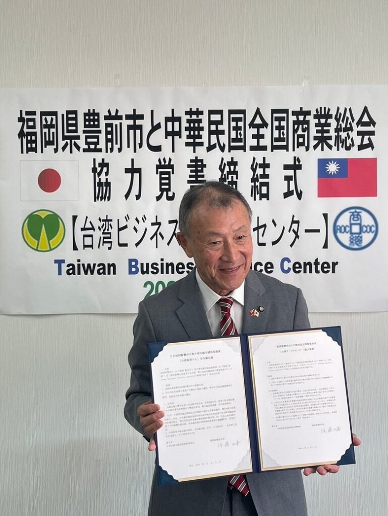 【福岡/綜合報導】中華民國全國商業總會為了協助業者布局日本市場,解決台灣企業赴海外發展時遇到的難題,由理事長許舒博代表,於11月11日與福岡縣豐前市市長後藤元秀以線上方式進行合作備忘錄簽署,福岡辦事處處長陳銘俊也參與見證,合作規劃設立「台商服務中心」,希望提供台廠一站式服務,藉由當地政府的相關措施提供台灣企業一站式服務,發揮產業群聚效益。