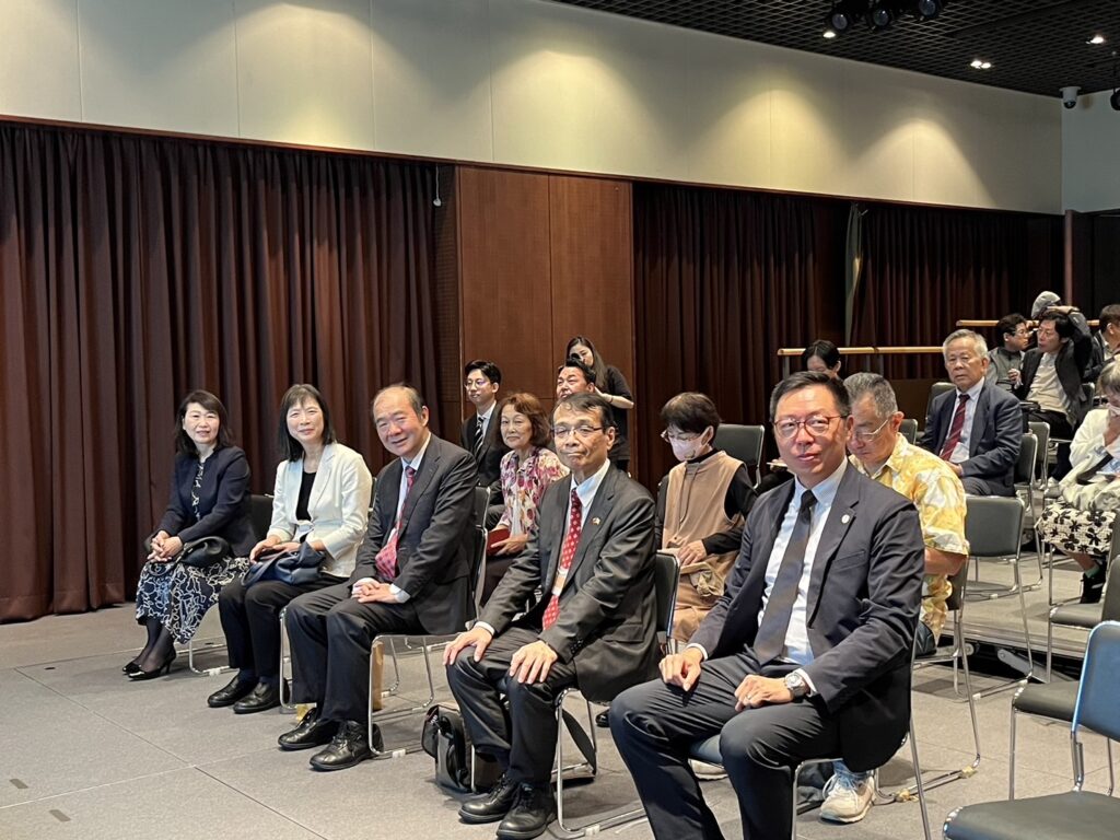 【熊本/綜合報導】熊本市中心商店街等聯合協議會及熊本市美術文化振興財團主辦的「2024台灣電影節in熊本」於11月2至3日在熊本市現代美術館隆重登場,本年電影節精選4部作品,包括《成功補習班》、《老狐狸》、《看見臺灣》、《KANO》。開幕當日特別邀請京都府出身之演員朝井大智舉辦座談會,與現場民眾近距離互動。朝井自2019年起開始在日本演藝圈活動,曾演出電視劇「最愛」、「詐欺獵人」,電影「黑天黑地黑道情」、「福田村事件」等作品。前年播放的NHK晨間劇「爛漫」中的台灣籍的介紹人・陳志明一角深受注目。來賓包括馬場成志總務副大臣、熊本縣選內市町村首長、局處長、議長、商工領袖、僑領等出席踴躍。