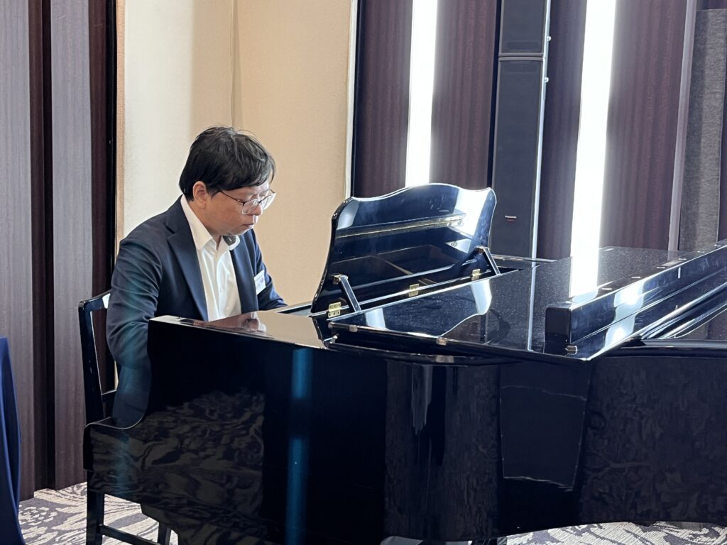 餐會在東吉仁先生引領乾杯後正式開始,主辦僑團特別安排陳柏宇先生於現場演奏鋼琴,大家在優美的音樂中,輕鬆愉快地交流,享受這難得的相聚時光。最後出席人員拿到主辦僑團準備的臺灣零食及食品都非常興奮,讓這祝賀會畫下完美句點。