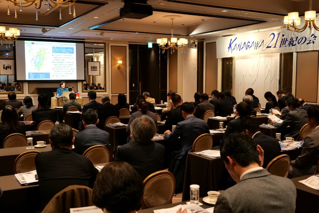 【橫濱/綜合報導】神奈川21世紀之會於11月19日舉行演講會,每日新聞橫濱支局高山祐支局長邀請橫濱辦事處處長張淑玲,以「觀光經濟交流與震災互助深化的台日友好情誼」為主題進行演講,說明支持台灣加入聯合國國際組織、台日歷史淵源、震災疫情互助情誼及台日交流現況。神奈川縣大和市古谷田力市長、海老名市內野優市長、座間市佐藤彌斗市長、綾瀨市橘川佳彥市長、靜岡縣伊豆市菊地豐市長、東伊豆町岩井茂樹町長等地方首長及產官學界人士約80名踴躍出席。