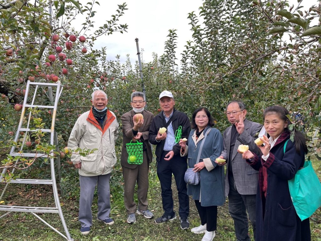 當天早上07:50参加者在池袋東京藝術劇場集合、随後出發前往第一站原田農園是天然度假村、一年四季都可以體驗採摘果樹的楽趣。 包括草莓、櫻桃、藍莓、桃子、蘋果、葡萄等水菓以及其他蔬菜和菇類。 由於11月正値蘋果盛産期、参加者得以享用親手採摘的新鮮蘋果、風味絶佳、還可以選購帶回。