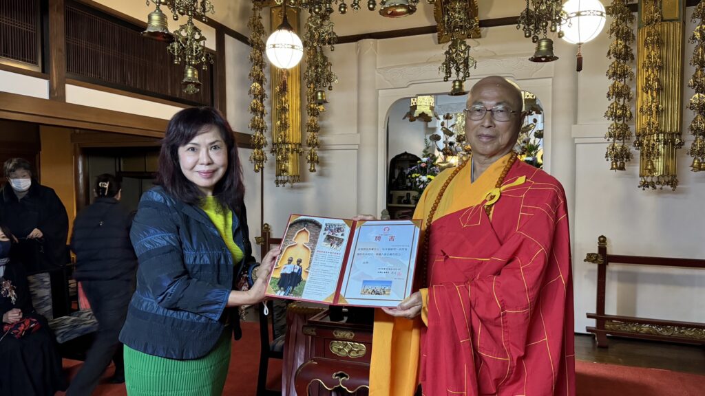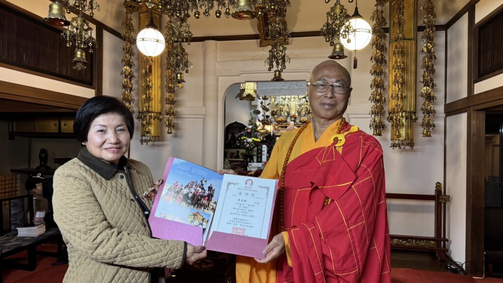 【東京/採訪報導】東京阿彌陀佛關懷中心(東京ACC)於11月10日舉行啟建三時繫念法會,由慧禮法師主持,會中慧禮法師也分享ACC在非洲發展的情況極困難等,並感謝大家的幫助。此外在這次活動中,也頒發顧問聘書給吳秀鸞,以及頒發感謝狀給蔡美銀,感謝她一直以來捐贈給ACC,幫助該ACC在非洲的發展。