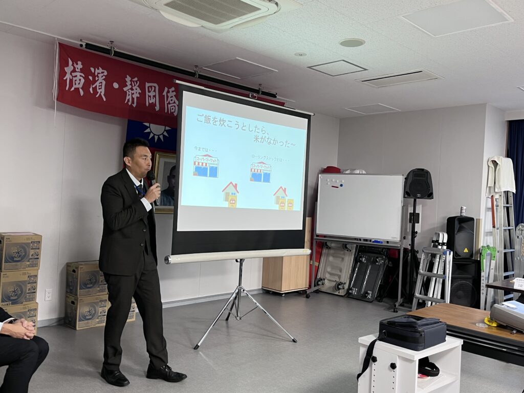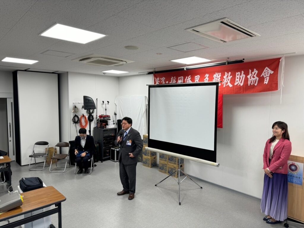 橫濱靜岡僑界急難救助協會會長洪益芬致詞提到,最近常看到播報利用LINE的新型詐騙新聞,還有很多災害,所以特別舉辦這個講座,提高大家的防範意識,也很高興中區總務課派員擔任講師,讓我們了解詐騙人的套路及最新防災觀念,相信一定可以給大家滿滿收穫。