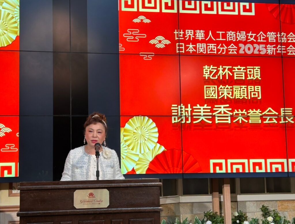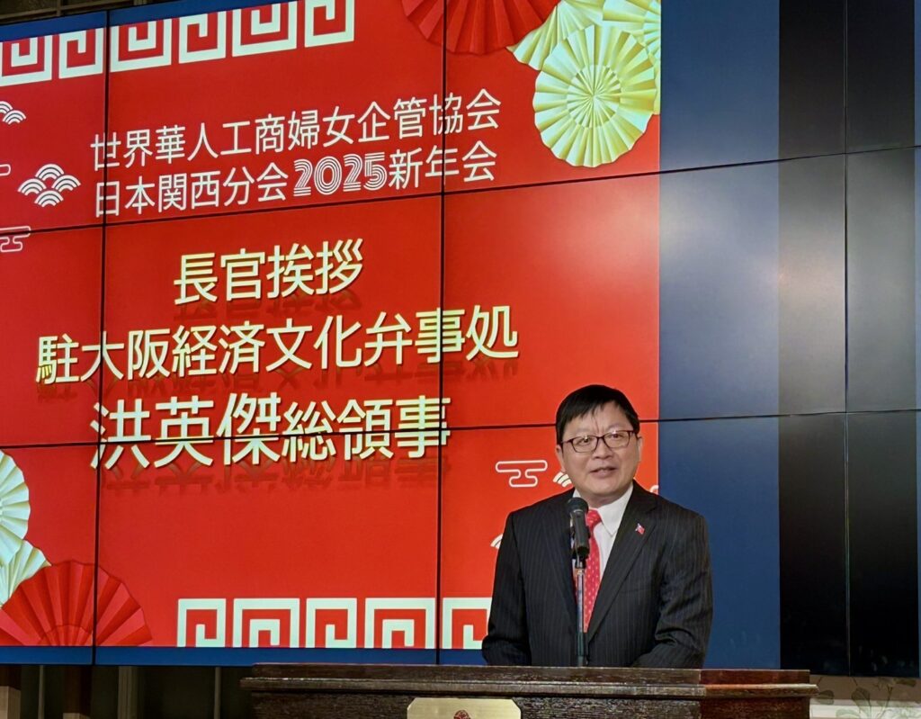 駐大阪辦事處處處長洪英傑致詞時,先以台語祝福大家「過好年,賺大錢,笑咪咪,尚蓋水」,贏得全場掌聲。他表示,世華日本關西分會成立七年多來,在歷任會長的帶領下積極參與社會公益,促進台日交流,成果有目共睹。台灣社會目前不管是公務員或是民意代表,女性的比例都非常高,如前總統蔡英文以及現任副總統蕭美琴,都是台灣「女力崛起」的代表人物。期許世華姊妹在新的一年繼續發揮在地影響力,用最美麗的姿態,推動國民外交,將台灣的發展和進步介紹給日本社會。