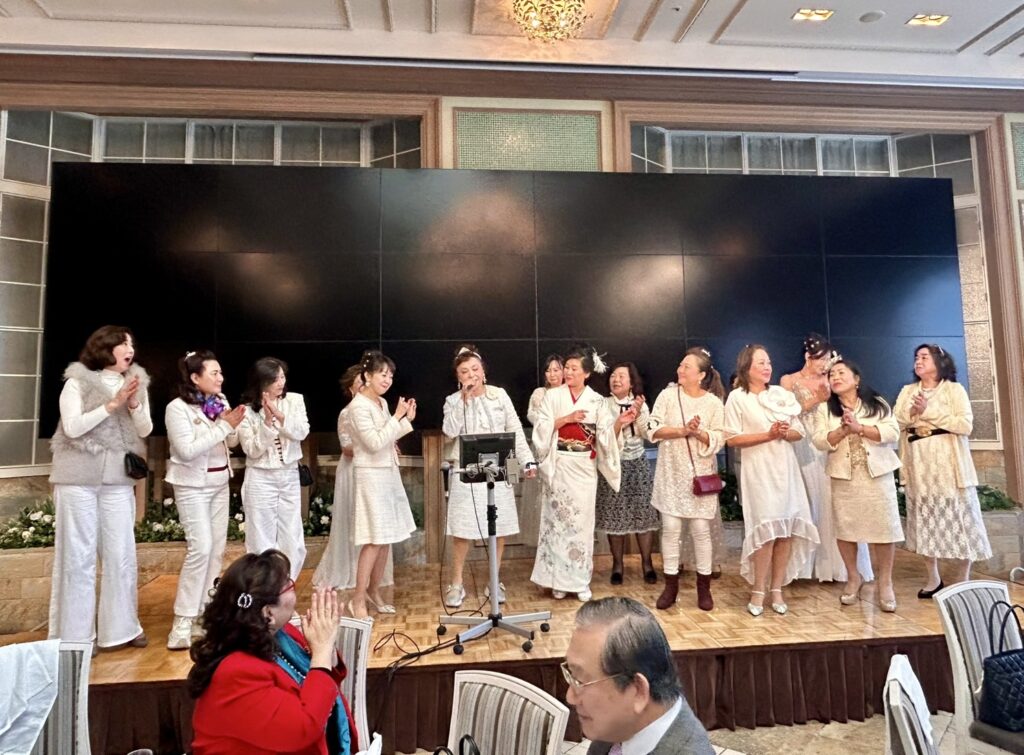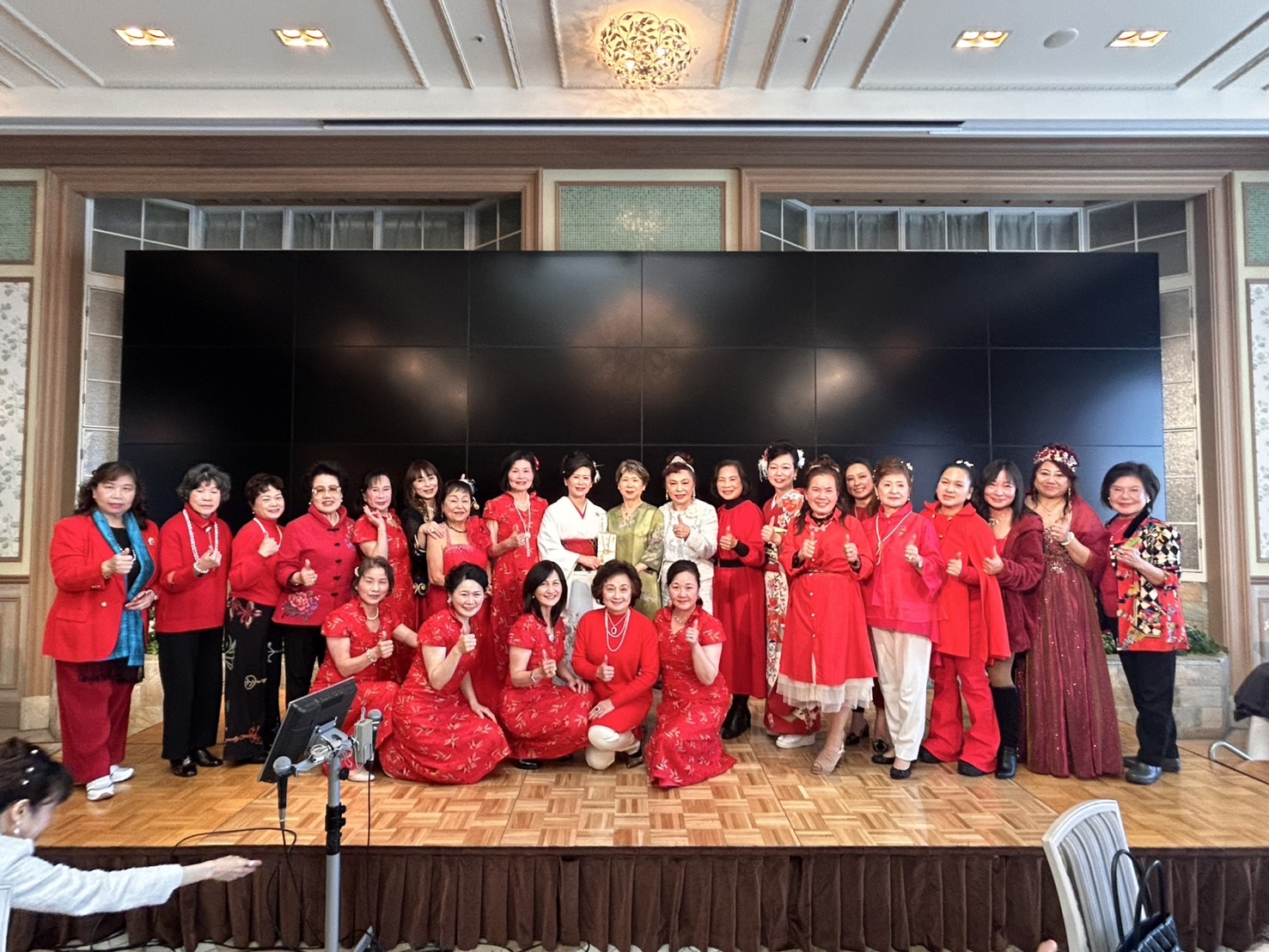 會長林伊曼致詞時表示,感謝各界還有世華日本関西分會姊妹在過去一年的支持,完成許多有意義的社會公益活動,從新春聚會到支援大阪中華學校春節祭活動,以及參與捐血活動、為弱勢群體分送台灣鳳梨,並捐贈弱勢婦女衛生用品,幫助解決日本的生理貧困問題。每一份付出,都蘊藏著世華姐妹們的愛心,彰顯女性對社會的積極貢獻與承諾。特別是去年九月,我們支援高野山世界遺產登錄20週年記念活動,提倡和平宣言,幫助花蓮地震賑災,促進台日文化的交流,展現日本關西分會的國際視野與影響力。