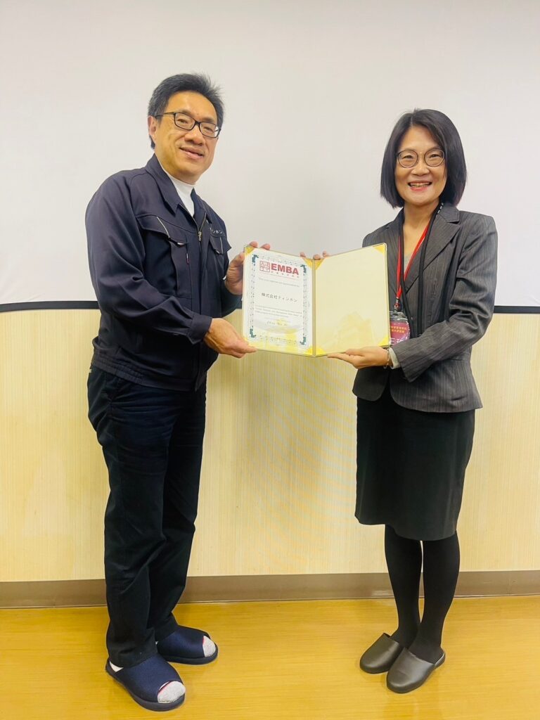 會中經由自我介紹得知王會長與李副院長竟然是大學前後期學長學弟更拉近了本次參訪雙方的距離。 會後雙方互贈了紀念品,李副院長表示難得有機會參觀由台灣人經營的日本公司,王會長也邀請日後有機會請大家再到加工場附設的餐廳用餐,結束了這次愉快,有意義的交流活動。