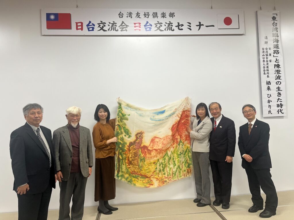 【山口/綜合報導】台灣友好俱樂部於2月15日在山口縣防府市文化中心舉辦「日台交流座談會暨懇親會」,邀請山口縣出身作家兼台北山口縣人會會長栖来光以「探討陳澄波」為題進行演講,盼透過瞭解與深究台日歷史事蹟,進一步增進兩國友好交流。山口縣代理議長島田教明、防府市長池田豐、台灣友好俱樂部會長相嶋秀雄以及僑務委員庄野康雄等山口九州各地近兩百名人士出席。