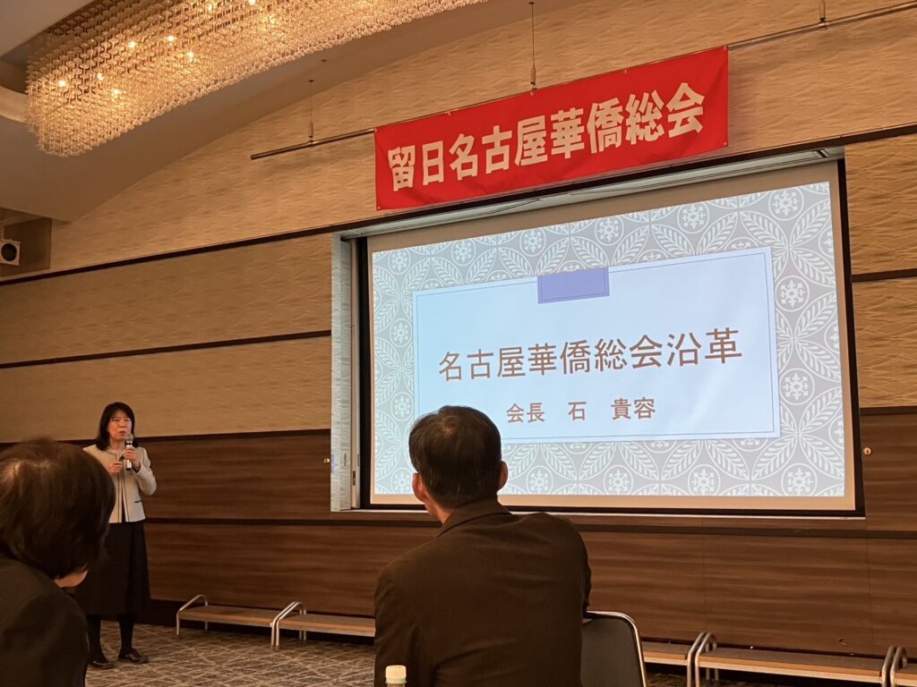 活動中先由石貴容會長報告名古屋華僑總會近年的沿革和財務報表,石會長也表示,本會旨在加深旅居東海地區台灣同胞之間的情誼,珍惜彼此的聯繫,同時促進台灣與日本的友好關係,因此我們一直積極開展各項活動。也希望透過這次的聯誼會,讓大家能夠享受與新朋友的相識以及與老朋友的重逢,並透過這次交流促進彼此的聯繫,增強我們的團結。