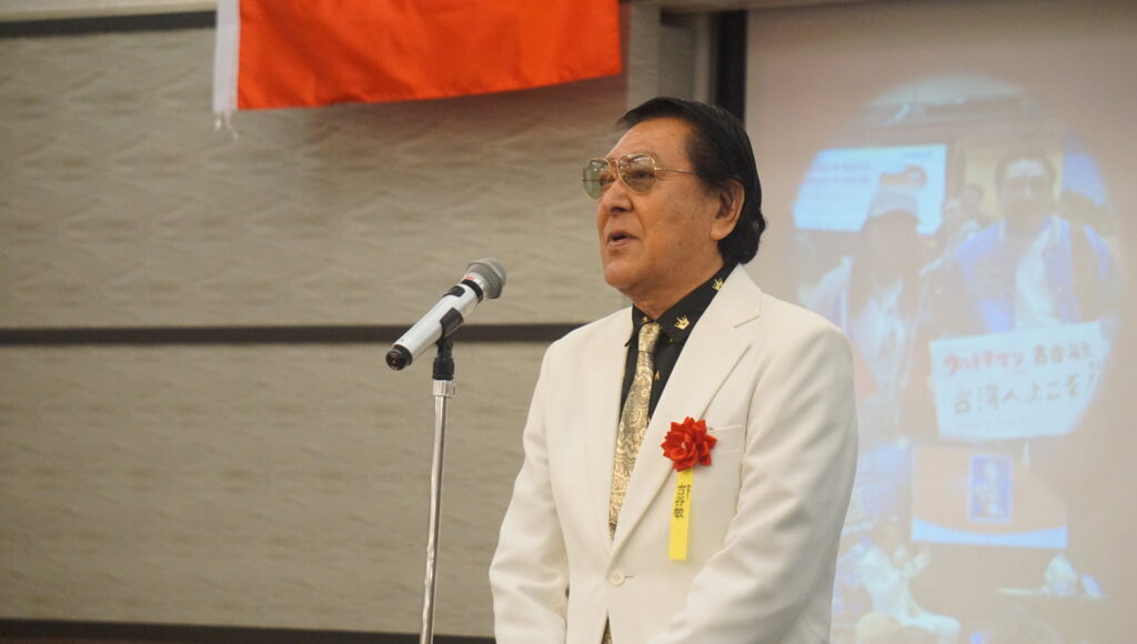曾擔任第一代超人力霸王的古谷敏表示,過去曾觀賞了原住民的傳統舞蹈,被那份藝術魅力深深打動,當時便立下心願,希望有朝一日能把這樣的表演介紹給日本朋友。然而原住民舞蹈通常需十多位表演者,連同工作人員約二十人,以我個人經濟能力難以負擔如此龐大的費用,雖曾多方奔走尋求資助,但仍無法實現這個夢想,今天能在這裡看到原住民舞蹈的演出,對我來說意義非凡,也讓我再次體會到日台文化交流的珍貴與美好。過去我曾參與《超人力霸王》系列,也受邀到世界各地舉辦簽名會與談話活動,親身參與了無數文化交流的場合。未來我也希望還有機會再度造訪台灣,繼續推動日本與台灣之間的友好交流,期盼兩地的往來更加深入長久。