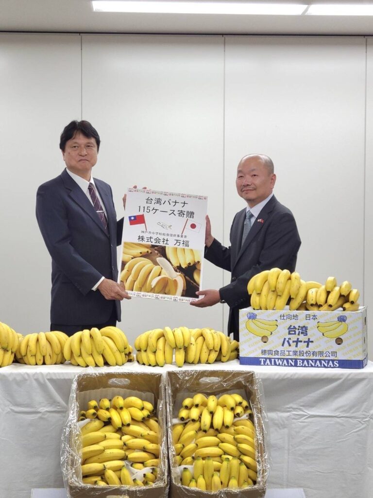 【神戶/綜合報導】為促進日台友好食育交流並推廣台灣美味香蕉,5月19日萬福有限公司社長鳩山誠志購買台灣屏東產香蕉115箱、寄贈神戶市各區中學作為營養午餐水果,增進台日友好以及神戶、屏東的「食育」交流。