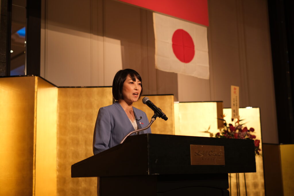 京都府議會日台親善議員懇話會副會長藤山由紀子致詞說,祝賀慶典圓滿舉辦並強調深化臺日友好。她指出,京都府議會將於10月16日接待臺灣女性企業家團體「國際女性交流會」,並於11月派團赴台灣與新加坡進行半導體、危機管理及教育政策等議題的考察交流。藤山亦分享首次訪臺印象,肯定臺灣與京都文化交流成果,並期盼兩地關係持續深化,成為彼此信賴的良好夥伴。