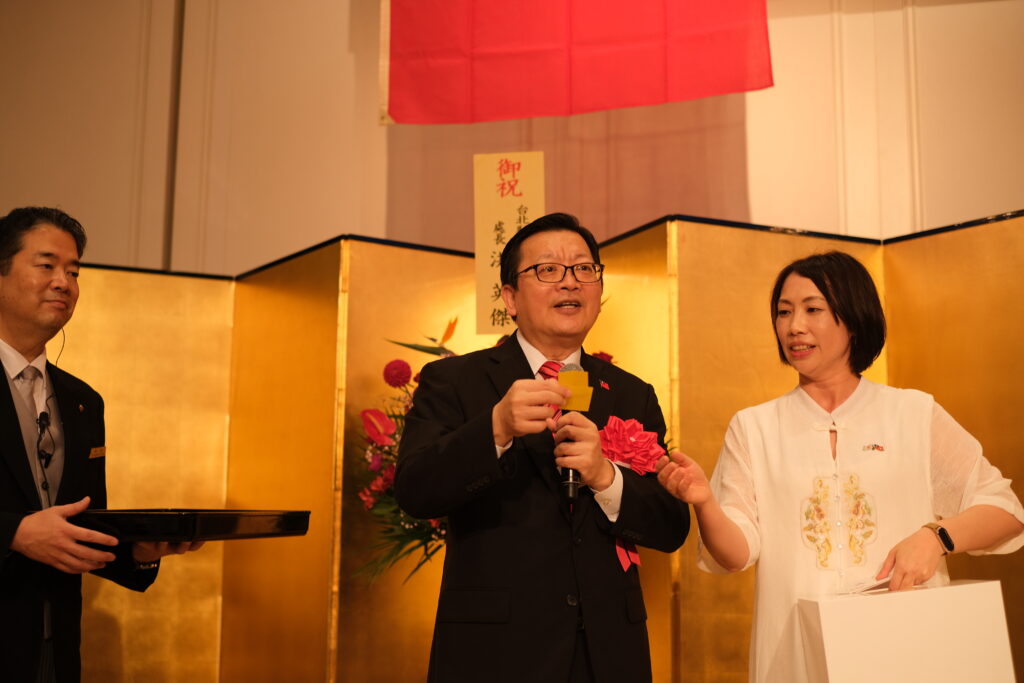 而眾議院議員勝目康致詞時,代表日本國會向中華民國建國114週年表達誠摯祝賀。他感謝京都華僑總會及僑界人士多年來推動日臺友誼,並說,日本與臺灣的關係近年愈加緊密,不僅在經貿合作上成果顯著,也在共同面對區域挑戰時展現堅定的夥伴精神。他以台積電(TSMC)熊本設廠為例,強調這項合作為日本地方產業政策帶來「革命性改變」,促進地方就業與產業升級,更讓日本青年重新感受到經濟成長的希望。