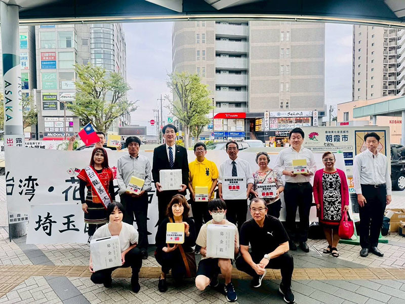 【埼玉訊】埼玉国際文化交流協会(田中敏裕会長)は10月12日、9月に台湾花蓮地域で台風により被害を受けた人々向けに、JR北朝霞駅前で緊急募金活動を行った。