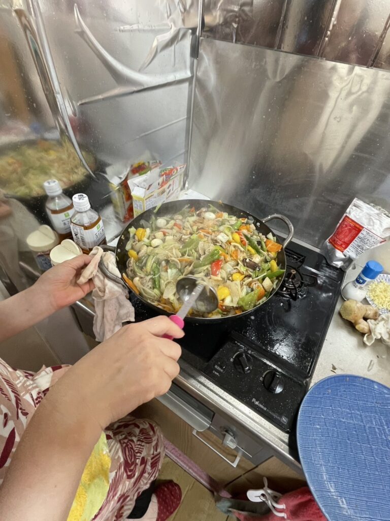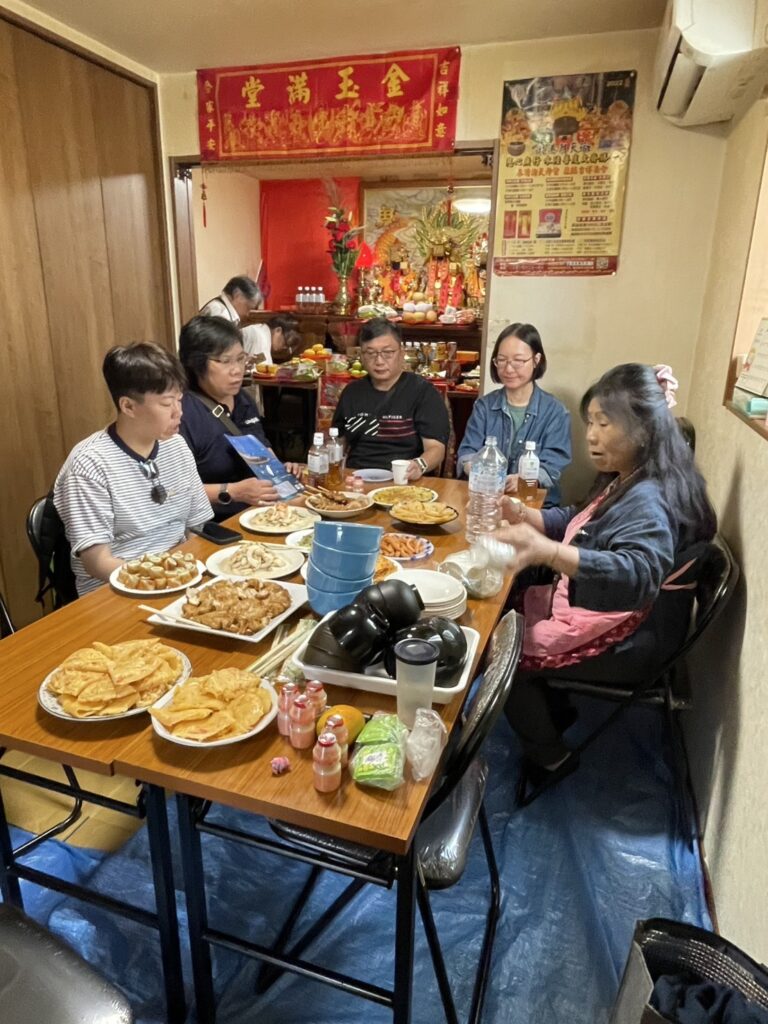 會中由日本關西媽祖會理事邱阿香指導,帶領大家做出「金針雞肉湯」、「八寶菜」、「絲瓜麵線」等臺灣特色料理,料理完成後眾人並一起圍桌共進,能在異國吃到臺灣味,場中和心中都是一陣溫馨。