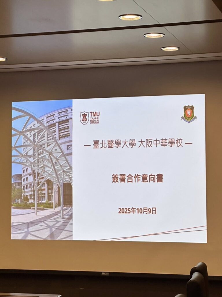 (臺北訊)臺日教育合作再添佳話。大阪中華學校理事會於10月9日假台北醫學大學醫療綜合大樓舉行教育合作意向書(MOU)簽署儀式,正式與台北醫學大學締結合作夥伴關係,攜手推動跨國教育與文化交流。