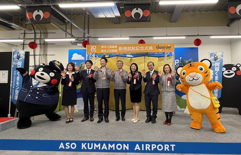 為見證歷史性首航時刻,台灣虎航董事長黃世惠受邀搭乘高雄-熊本首航班機前往熊本,並於抵達後出席在阿蘇熊本機場舉行的首航儀式。活動由熊本縣知事木村敬率同超人氣「熊本熊」及當地代表盛大迎接,駐福岡辦事處處長陳銘俊、大阪観光局所長張珏亦到場共襄盛舉,展現日方對於同日雙航線開航的高度重視。
