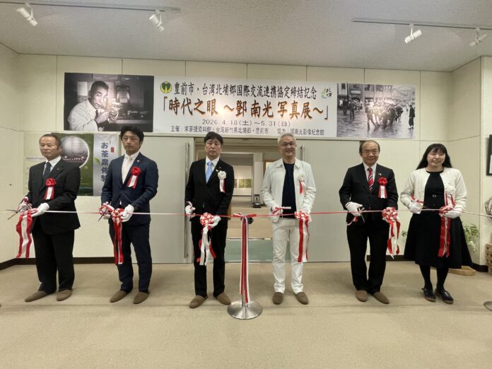 為慶祝今年一月豐前市與新竹縣北埔鄉締結國際交流合作協定,特於4月18日起,假豐前市求菩提資料館,舉辦「時代之眼—鄧南光攝影展」等相關活動,北浦鄉長莊明增及豐前市長西元健共同主辦,福岡縣議員戶成祥平、豐前市議會台日友好議員連盟郡司掛八千代會長及駐福岡辦事處陳銘俊總領事等應邀參加剪綵儀式,見證雙方熱切的交流與友好關係。陳總領事致詞表示,九州山口地區近年來與我締結姐妹市數倍增長,關係緊密形同家人,期盼共同肩負AI時代民主國家半導體供應鏈製造之重責。