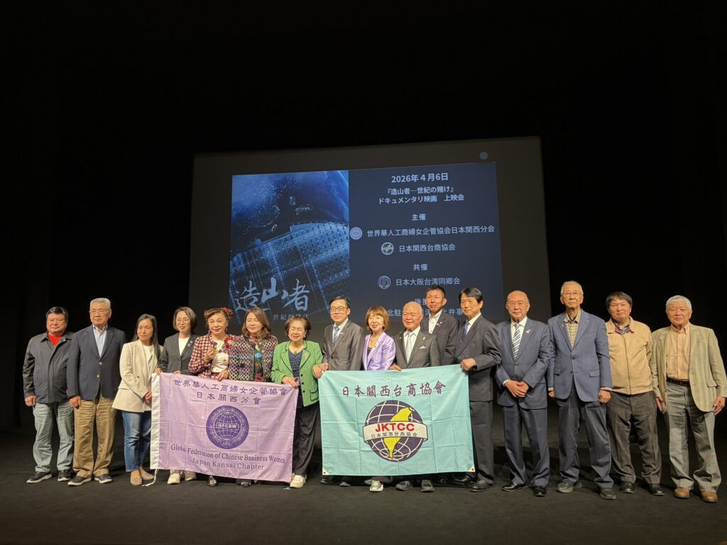 (大阪訊)今(2026)年 4 月 6 日,紀錄片《造山者-世紀的賭注》於大阪 ABC Hall 舉辦放映會。本次活動由世界華人工商婦女企管協會日本關西分會(以下簡稱世華)及日本關西台商協會共同主辦,日本大阪台灣同鄉會協辦,台北駐大阪經濟文化辦事處後援。活動吸引關西地區僑胞及日本各界友我人士踴躍參與,現場座無虛席,氣氛熱烈。