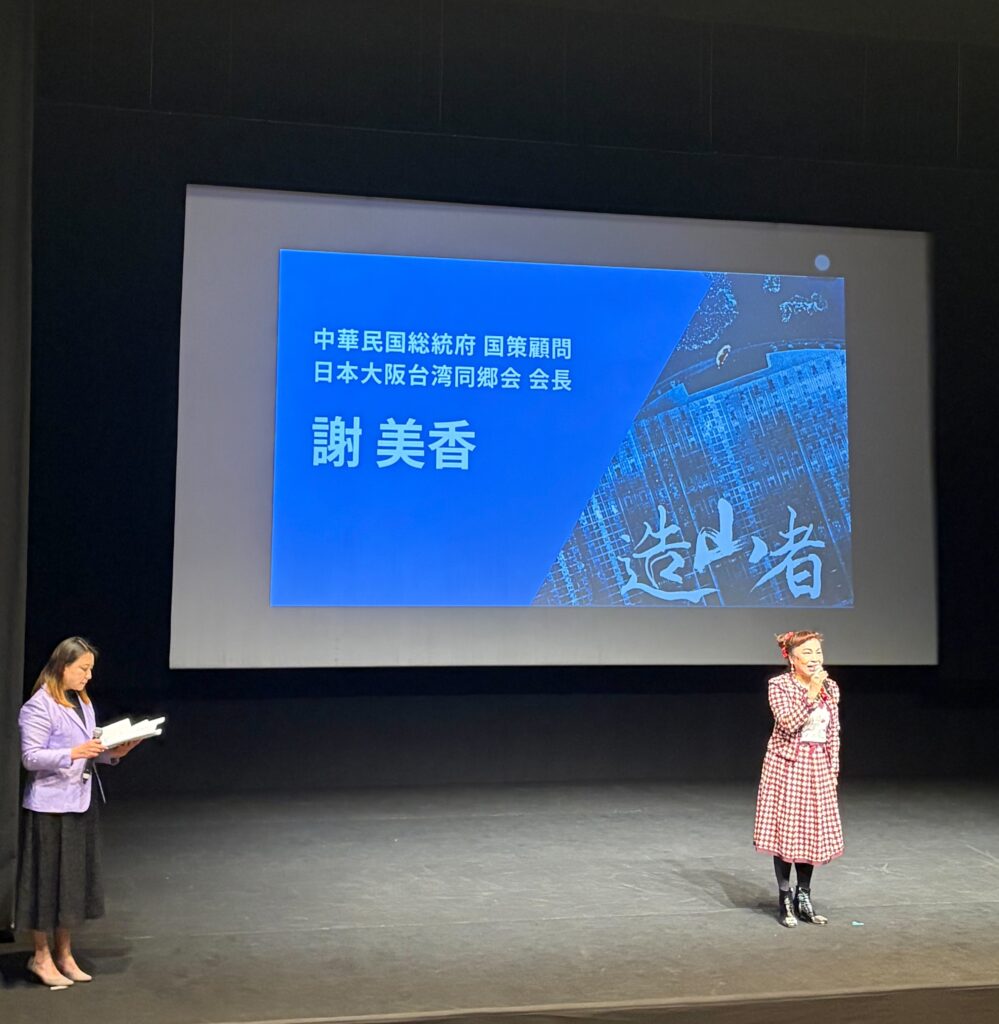 世華日本關西分會創會會長俞秀霞為本次放映會發起人。她致詞時感謝所有工作人員的付出,並表示日前拜會行政院院長卓榮泰時,曾提及本次放映活動。卓院長表示,《造山者》充分展現出台灣人民所珍視的價值,以及這些價值所承載的重要意義。