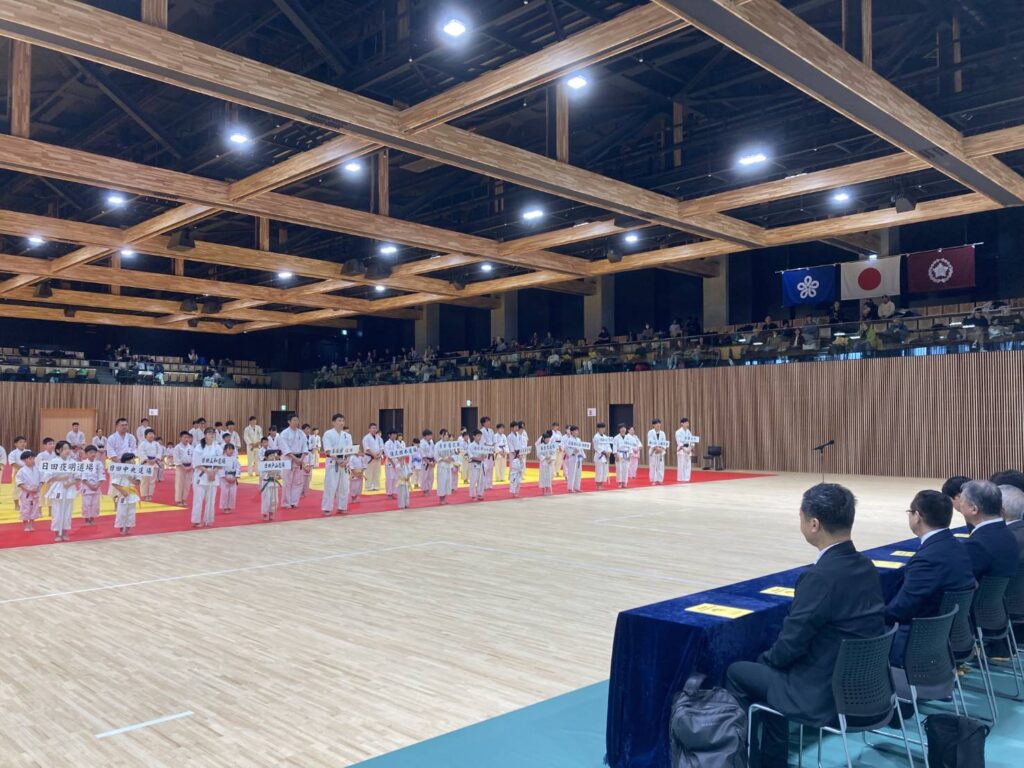 全日本少林拳武德會第三代宗家森實芳啟(修司)致詞表示,感謝各位來賓百忙中蒞臨指導及鼓勵,少林拳係西元1800年起源於中國的武術,後由初代宗家末永節先生引進,並於2008年参加在台北舉辦的「全國菁英盃大會」,開展了武術的國際交流,至今該會與台灣已有30年以上的交流情誼,特別感謝駐福岡辦事處的支持,明年將邀請台灣代表團隊前來交流,以持續加深友好情誼,最後期勉各位選手們能將平日練習的成果充分展現出來,在武術的修為更上一層樓。王秘書對森實宗家的好意表示感謝,並允屆時將提供必要協助,促進雙方交流。