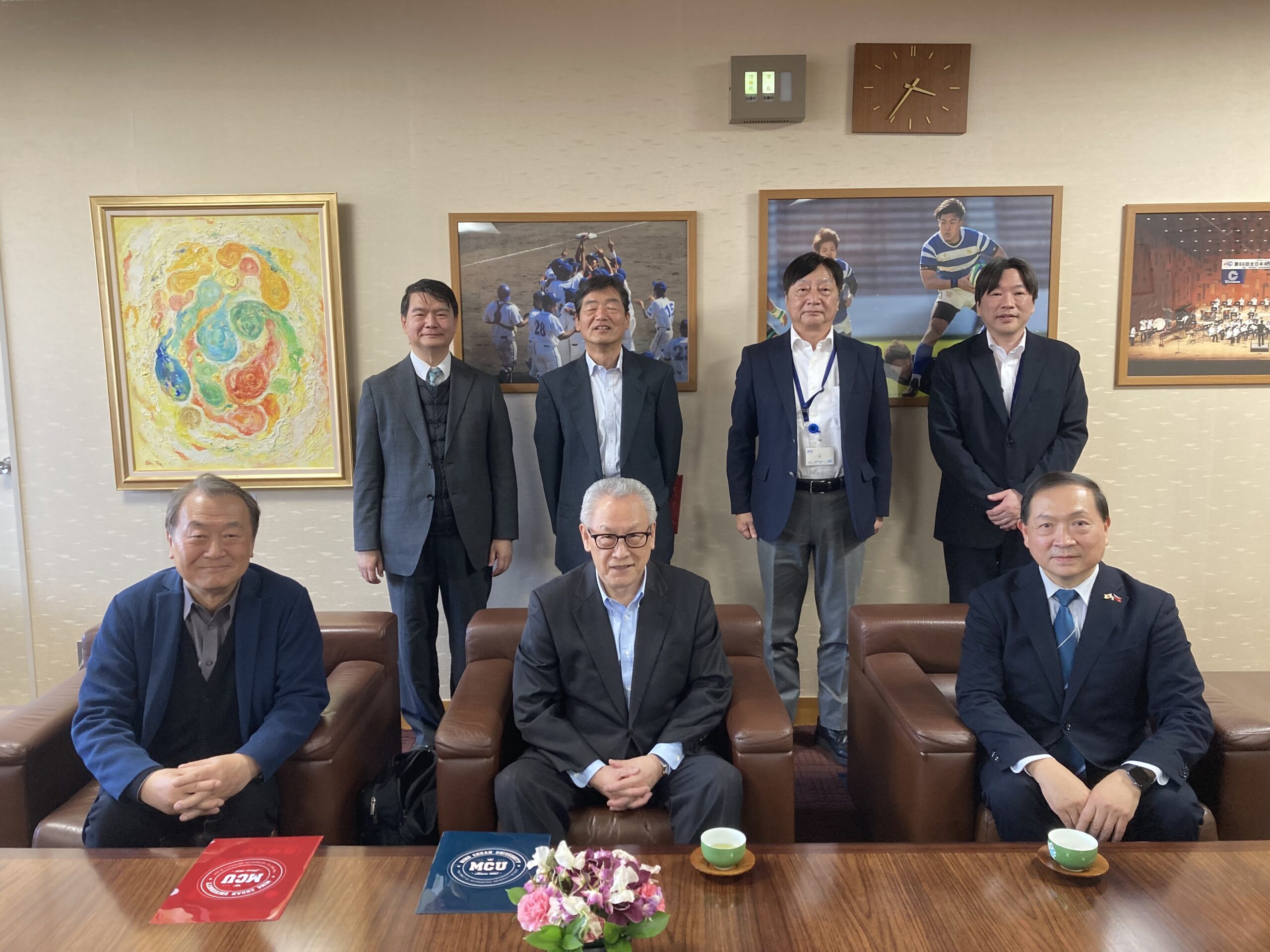 福岡工業大學大谷忠彥理事長致歡迎詞時表示,感謝駐福岡辦事處陳銘俊處長的引介與協助,近年來該校與台灣多所大學締結了合作交流協定,倪寶榮副校長亦補充說明,該校積極推動國際化政策,持續加強與國外學校的合作交流,明年預定在工學部內新設半導體課程(以實用為導向)應可與銘傳大學進行相關交流。王領事表示,銘傳大學是一所非常積極推動國際化的優質大學,歡迎兩校締結合作交流協定,駐處可予必要協助。