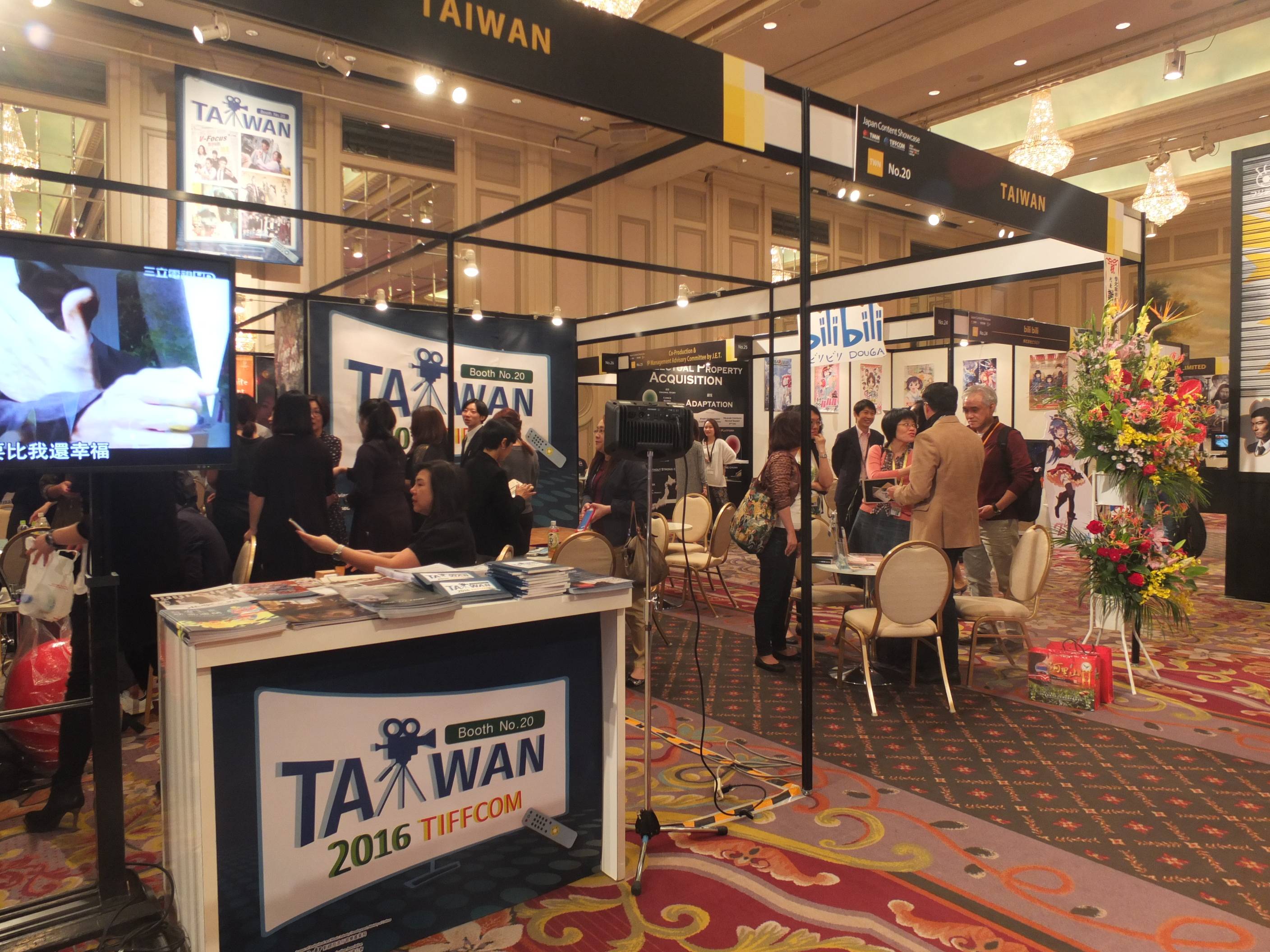 TIFFCON台湾ブースの主催は、文化部コンテンツ・流行音楽産業局と台北市影音節目製作商業同業公会(台北市コンテンツ制作同業者協会)。会場では台湾24社の出展者が台湾制コンテンツを披露しており、79の作品が出展されている。出展分野もテレビドラマ、映画、動画、ドキュメンタリーなど、バラエティーに富んでいる。TIFFCONは10月27日まで行われ、日本及び世界各国に台湾コンテンツの魅力を伝える。