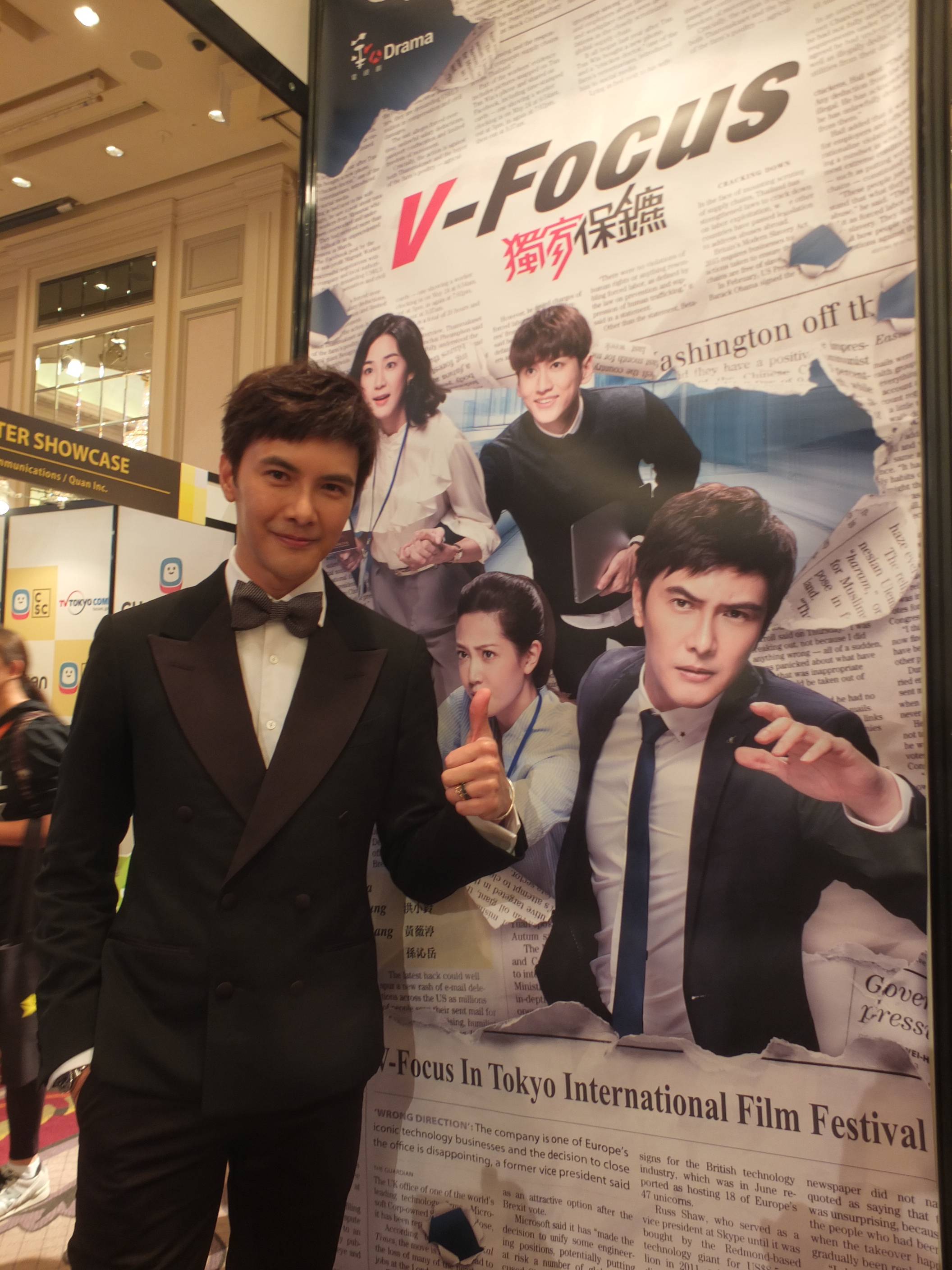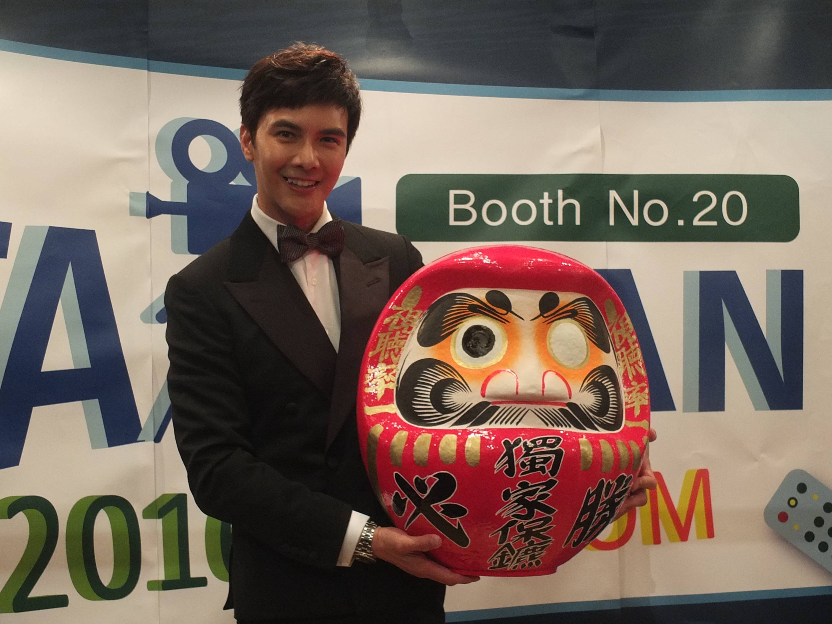 台湾三立テレビの台湾ドラマ「独家保鑣(V-Focus)」の主演を務める謝佳見(メルビン・シア)が10月26日、グランドニッコー東京 台場で開催されている東京国際映画祭併設マーケットのTIFFCOM内台湾ブースで行われた台湾コンテンツの記者発表会に登壇し、同日放送開始の同ドラマをPRした。黒のスーツに蝶ネクタイを身につけ登場したメルビンは用意された「独家保鑣」と書かれた真っ赤なダルマに片方の目を描き入れ、同ドラマのヒットを祈願した。