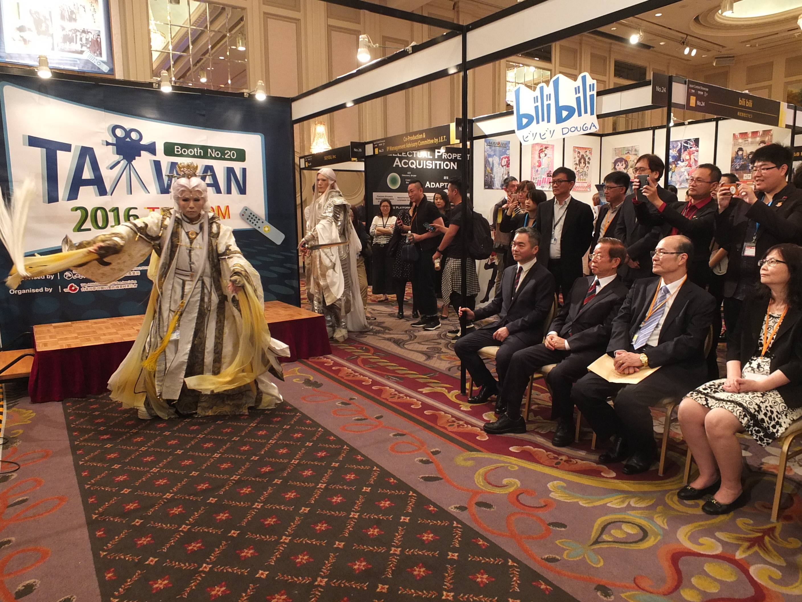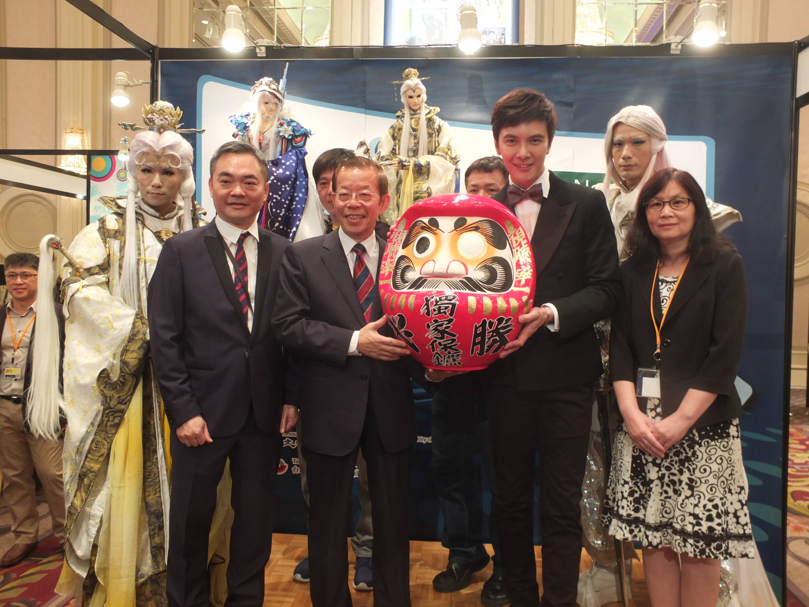 その他、同会には台北駐日経済文化代表処の謝長廷代表、台湾文化センターの朱文清センター長、台北市影音節目製作商業同業公会の楊繼昌理事長らが出席。霹靂グループの日台合作布袋戯映像作品の布袋戯人形及びコスプレイヤーによるパフォーマンスも行われた。