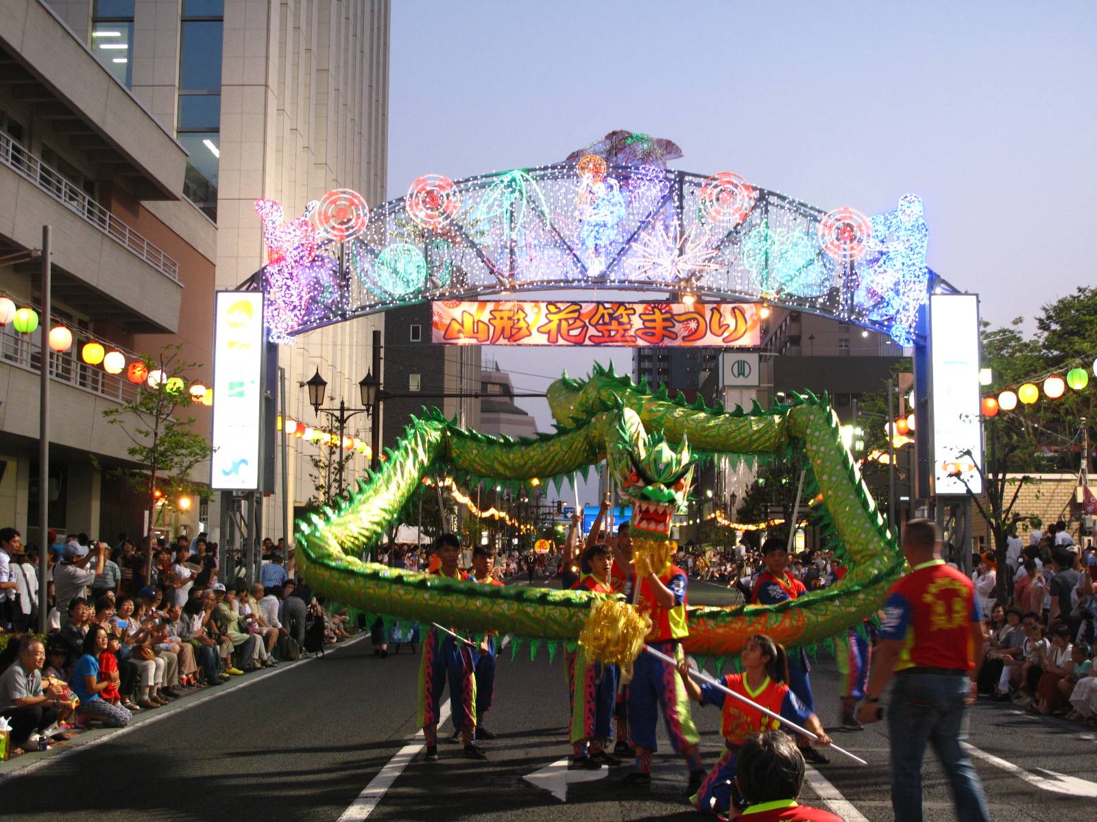 なお、山形市で5日に幕を開けた山形花笠まつりで同団は、パレード前に出発式を行い、県日華親善協会(後藤完司会長)からミニチュア花笠を受け取った。まつりが始まると、太鼓と銅鑼(どら)を響かせながら、竜神舞と獅子舞を披露し、会場は台湾ムードに包まれ大盛り上がり。陳慶宗団長は「山形の人の幸せを願った」と語った。