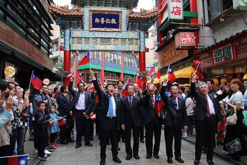 接著,在大會執行委員長林子傑的帶領下,全場齊聲呼喊「中華民國萬歲!」和「民主自由萬歲!」後,由舞獅隊及國旗隊打頭陣,開始熱鬧的國慶遊行。適逢10日當天為日本休假日,因此橫濱中華街擠滿觀光客,道路兩旁更有不少民眾揮舞著中華民國國旗,一起慶祝雙十節。