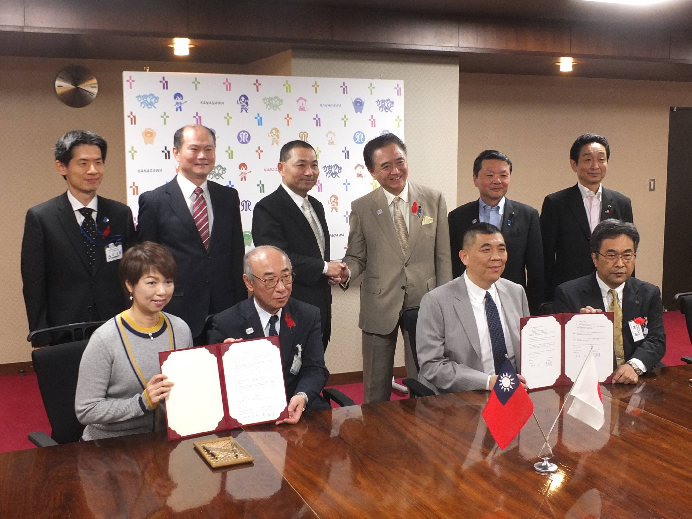 当日は、神奈川県庁新庁舎で協定調印式が行われ、神奈川県の黒岩祐治知事と新北市の候友宜副市長が出席し、双方の間を取り持った台北駐日経済文化代表処の粘信士処長立会いのもと、同協定を調印した。