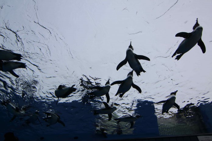 1978年10月完工的太陽水族館,是日本首座蓋在頂樓的水族館,今年7月12日館方重新整修開放,要讓旅客體驗「天空飛的企鵝」。一走進太陽水族館的戶外展場最大的特色,是可以看見企鵝在頭頂上的水池悠閒游泳,鵜鶘在天空中滑水的奇特景象。這次同時引進的新展區共有5個,除了「天空企鵝」外,還有「草原企鵝」、「水獺們的岸邊」、「閃光泉」和「天空通道」,就是要你留下深刻印象。