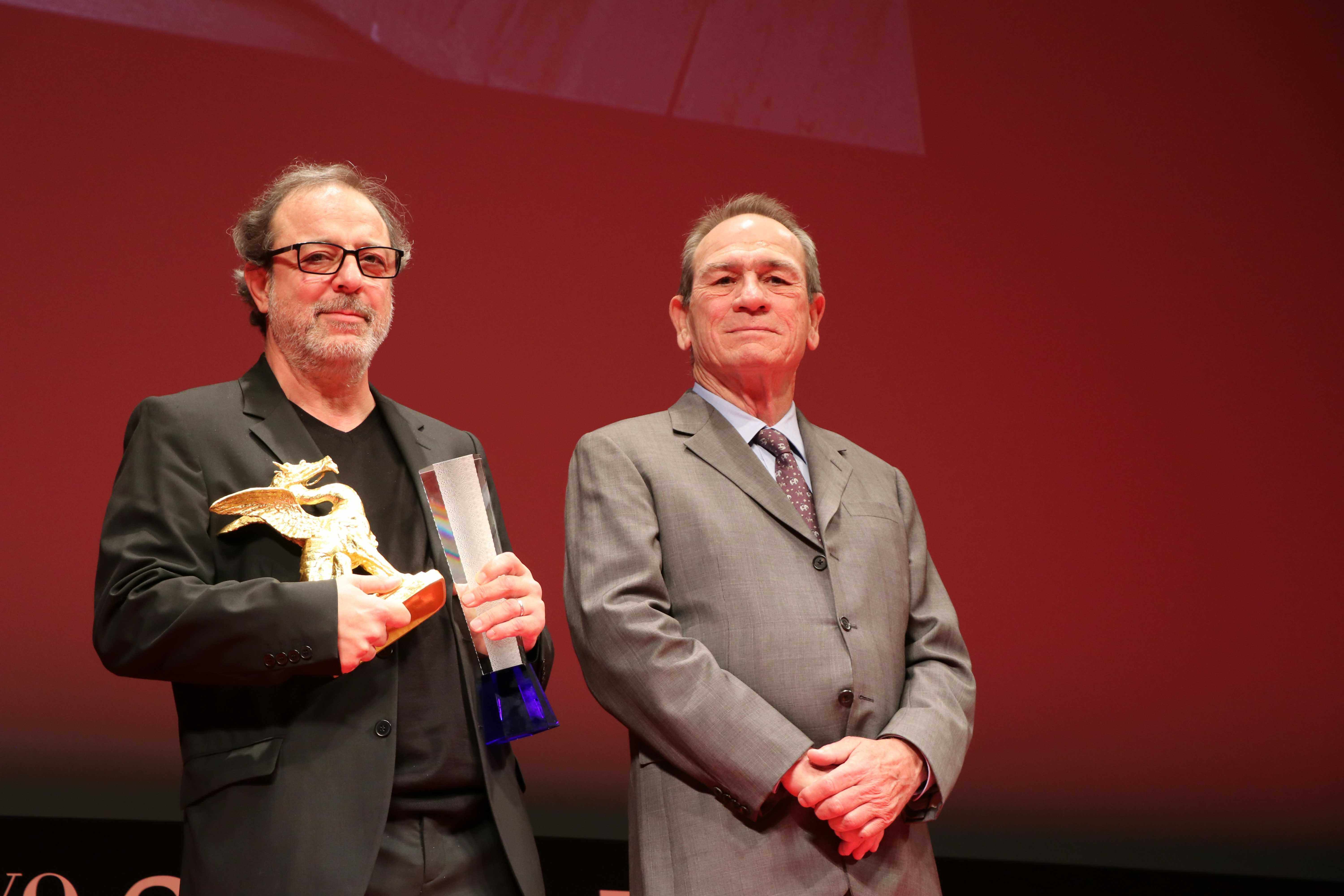 國際評審團主湯米李瓊斯(右)與今年東京大獎得主土耳其導演Semih Kaplanoglu