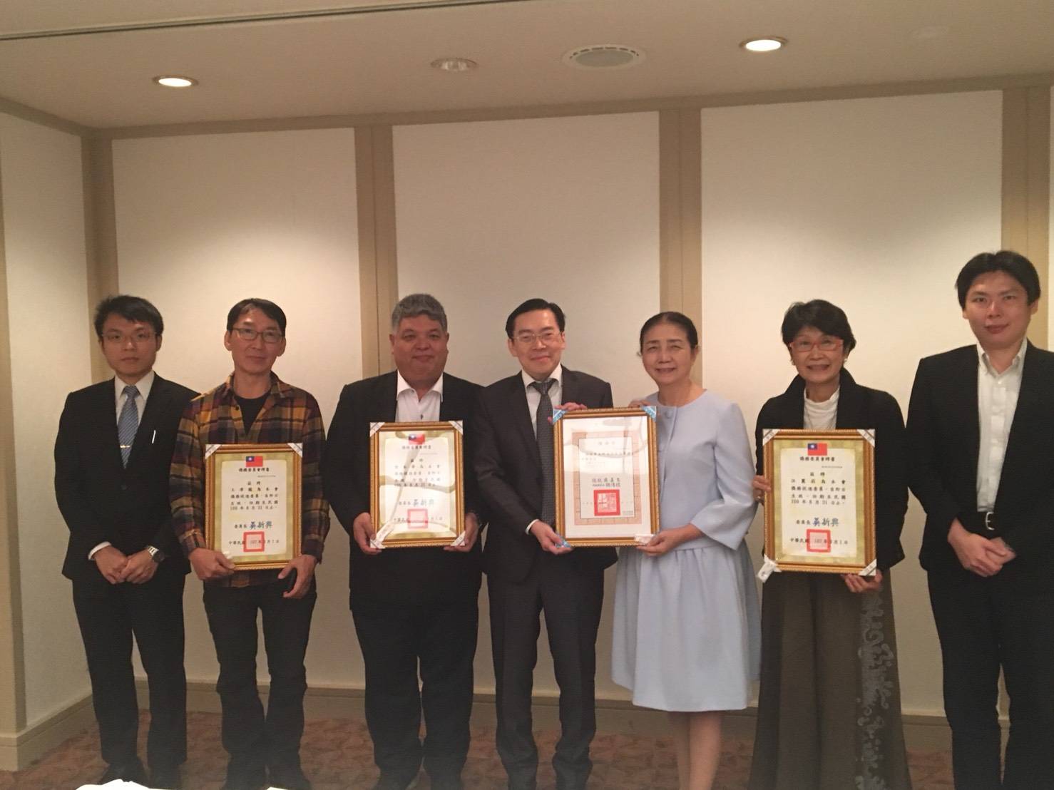 【那霸/綜合報導】那霸辦事處於十二月十九日在那霸市Harborview飯店舉辦沖繩地區僑務委員暨僑務促進委員聘書頒贈典禮。出席者有僑務委員黃美卿(新垣旬子)、僑務促進委員王澤龍(中山龍二)、汪麗莉(福本麗莉)及張本肇。由處長范振國逐一頒贈聘書予各委員,並舉辦餐敘就僑務推動工作交換意見,討論熱絡、氣氛融洽。